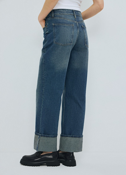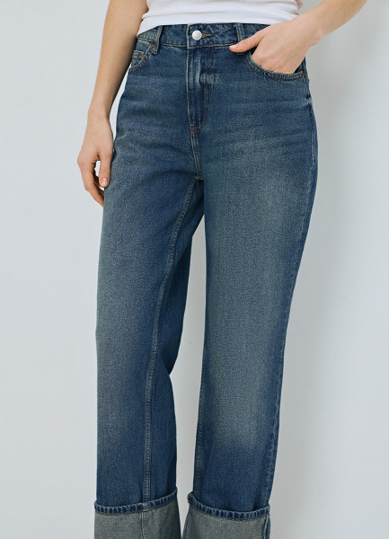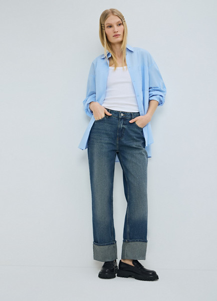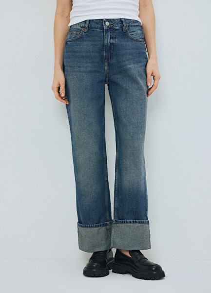 Прямые джинсы средней посадки с отворотами, Синий