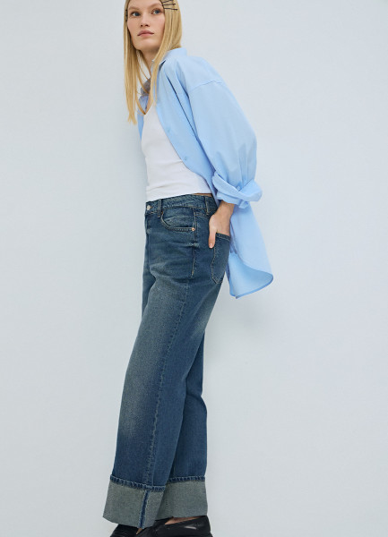Прямые джинсы средней посадки с отворотами, Голубой