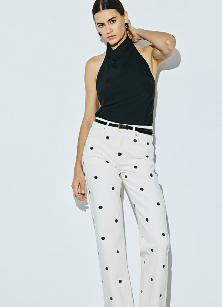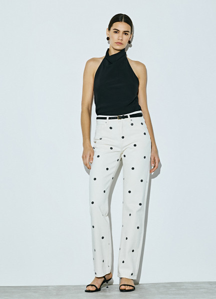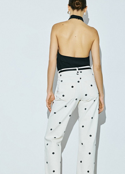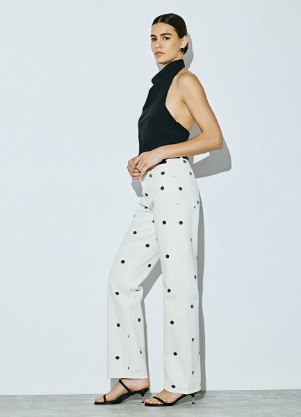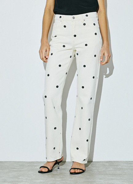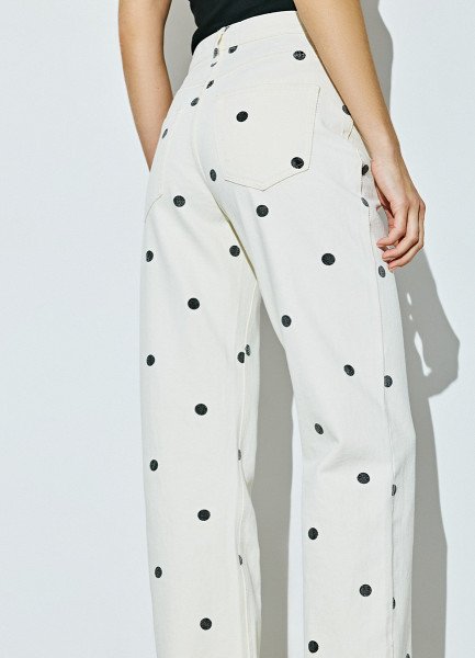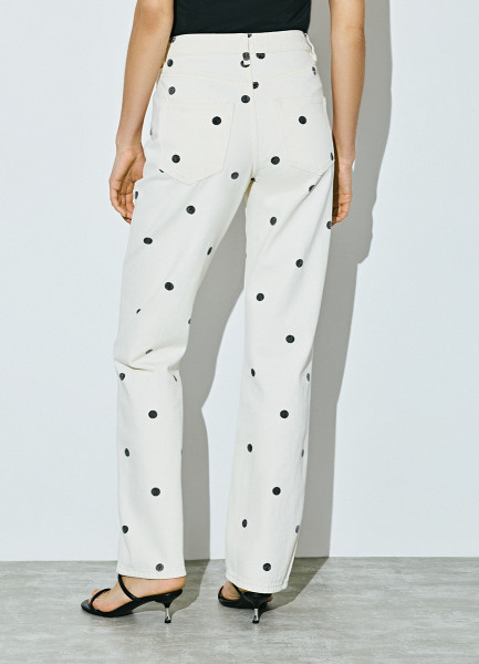 Прямые джинсы в горошек, Бежевый