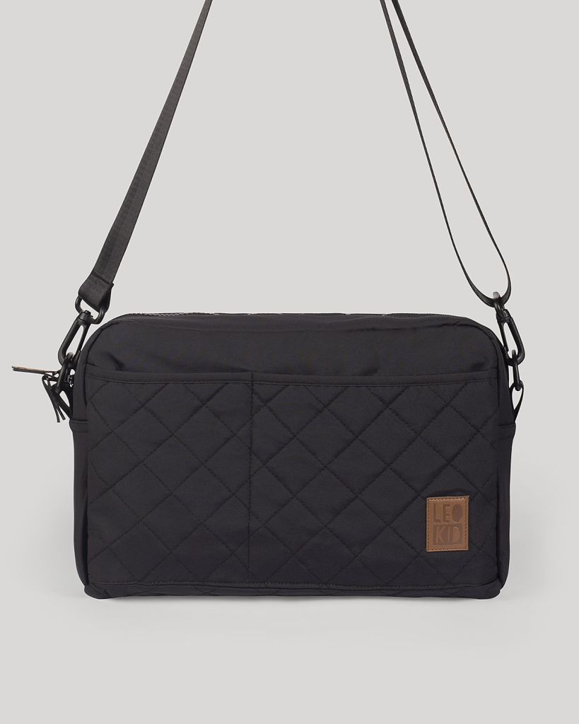 Аксессуар выполнен из прочной ткани с водоотталкивающей пропиткой и легко крепится на ручке коляски одним из трех способов: с помощью липучек, карабинов или основного ремешка. Его также можно носить в руках или на плече.