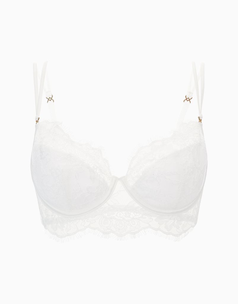 Бюстгальтер с мягкими чашками и усилителем из спонжа на стане. Верхняя часть чашек выполнена из тонких прозрачных материалов, что добавляет особую пикантность образу.