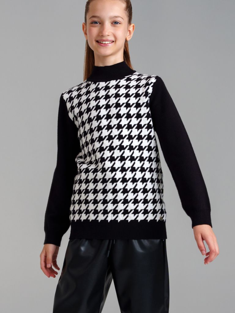 Джемпер из вязаного трикотажа. 50% вискоза. Вискоза отличается высокой гигроскопичностью - она впитывает влагу и отлично сохраняет тепло. Манжеты и низ изделия в рубчик.
