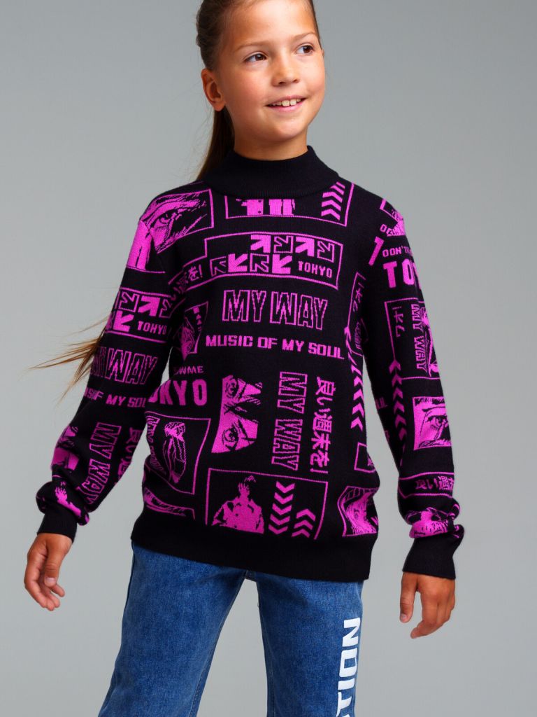 Джемпер из вязаного трикотажа. 50% вискоза. Вискоза отличается высокой гигроскопичностью - она впитывает влагу и отлично сохраняет тепло. Горловина, манжеты и низ изделия в рубчик.