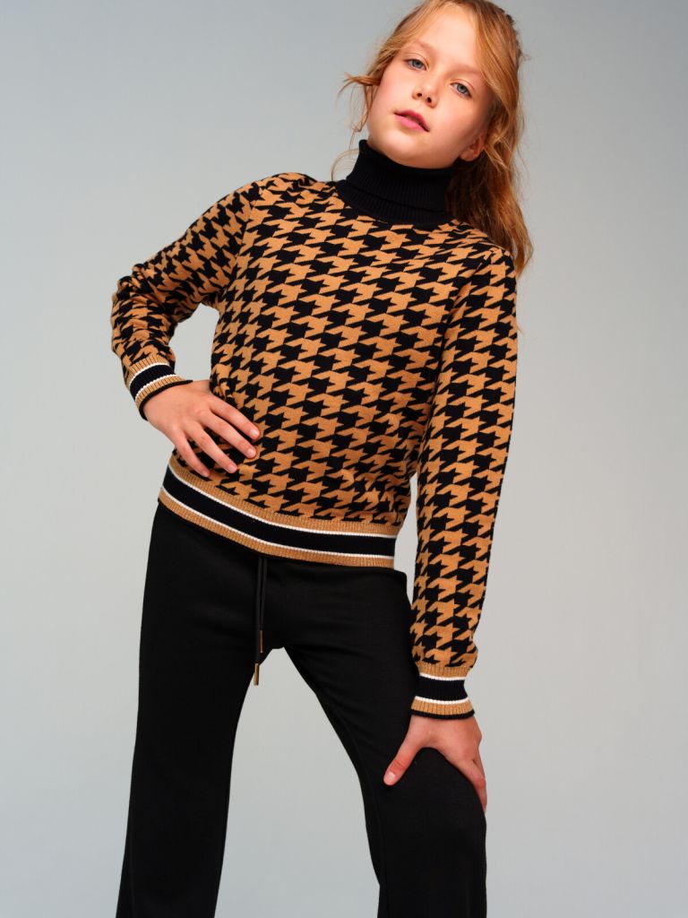 Свитер для девочки подростка. Модный свитер жаккардовой вязки с высоким содержанием вискозы. Вискоза хорошо поглощает влагу, отлично пропускают воздух. Изделия приятны к телу, и не вызывают раздражения. Модель из капсульной коллекции BLACK CHIC (БЛЭК ШИК). Соберите полный образ в едином стиле!