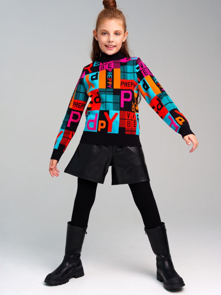 Свитер для девочки подростка. Джемпер из вязаного трикотажа с высоким содержанием вискозы. Модель из капсульной коллекции PREPPY VIBE (ПРЕППИ ВАЙБ). Соберите полный образ в едином стиле!