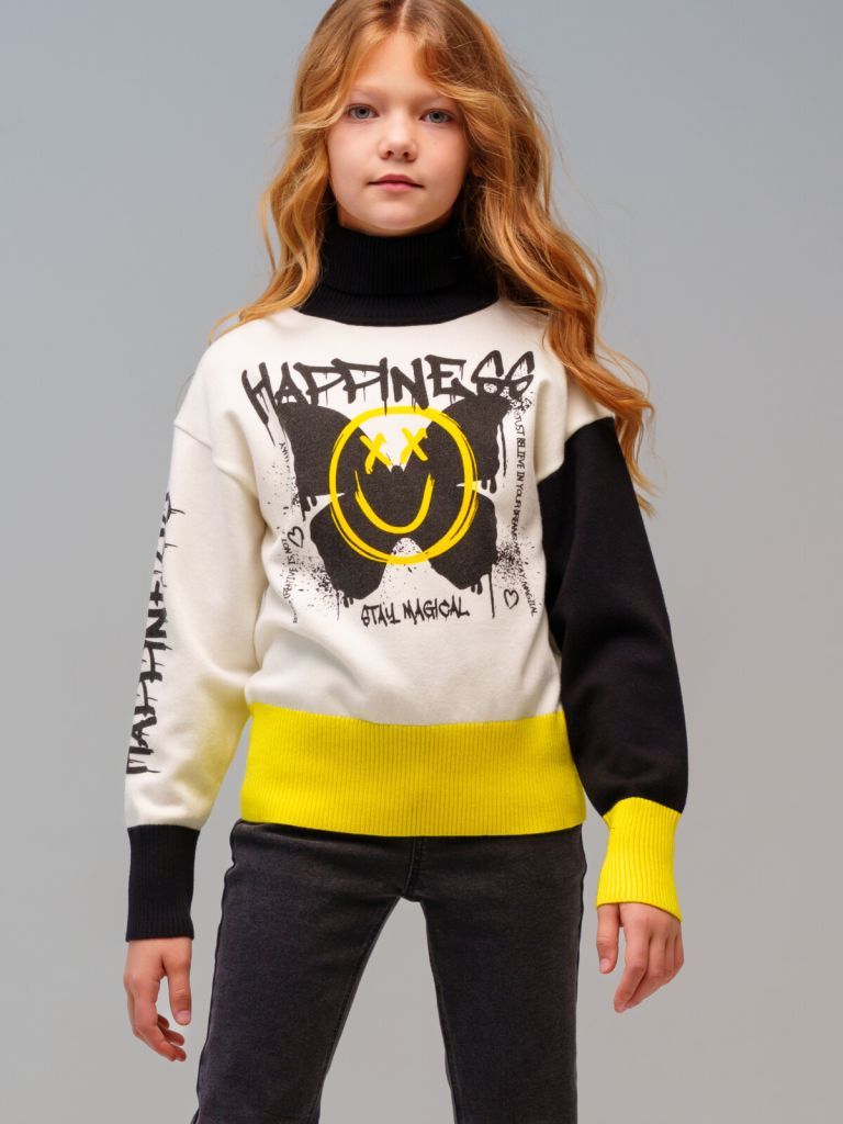 Свитер для девочки подростка. Свитер из вязаного трикотажа с добавлением вискозы. Модный свитер жаккардовой вязки с высоким содержанием вискозы. Вискоза хорошо поглощает влагу, отлично пропускают воздух. Изделия приятны к телу, и не вызывают раздражения. Модель из капсульной коллекции DIGITAL TRANSFORM (ДИДЖИТАЛ ТРАНСФОРМ). Соберите полный образ в едином стиле!