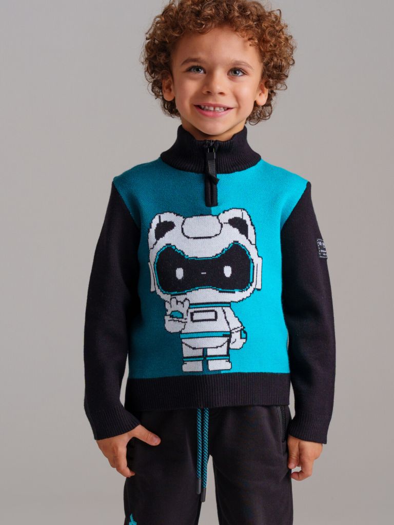Свитер детский для мальчика. Модный свитер жаккардовой вязки с высоким содержанием вискозы. Вискоза хорошо поглощает влагу, отлично пропускают воздух. Изделия приятны к телу, и не вызывают раздражения. Модель из капсульной коллекции VR AVATAR (ВИАР АВАТЭР). Соберите полный образ в едином стиле! Джемпер будет актуален для детского сада, в садик, для прогулок.