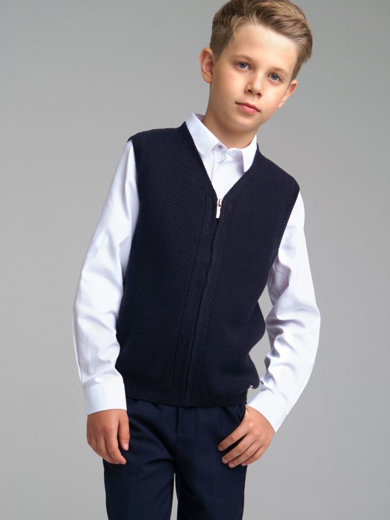 Классический темно-синий школьный жилет на молнии для мальчика подростка от PlayToday — практичный и удобный вариант для школы в прохладную погоду. Фактурная вязка и комфортный крой делают его универсальным дополнением к любой школьной форме.