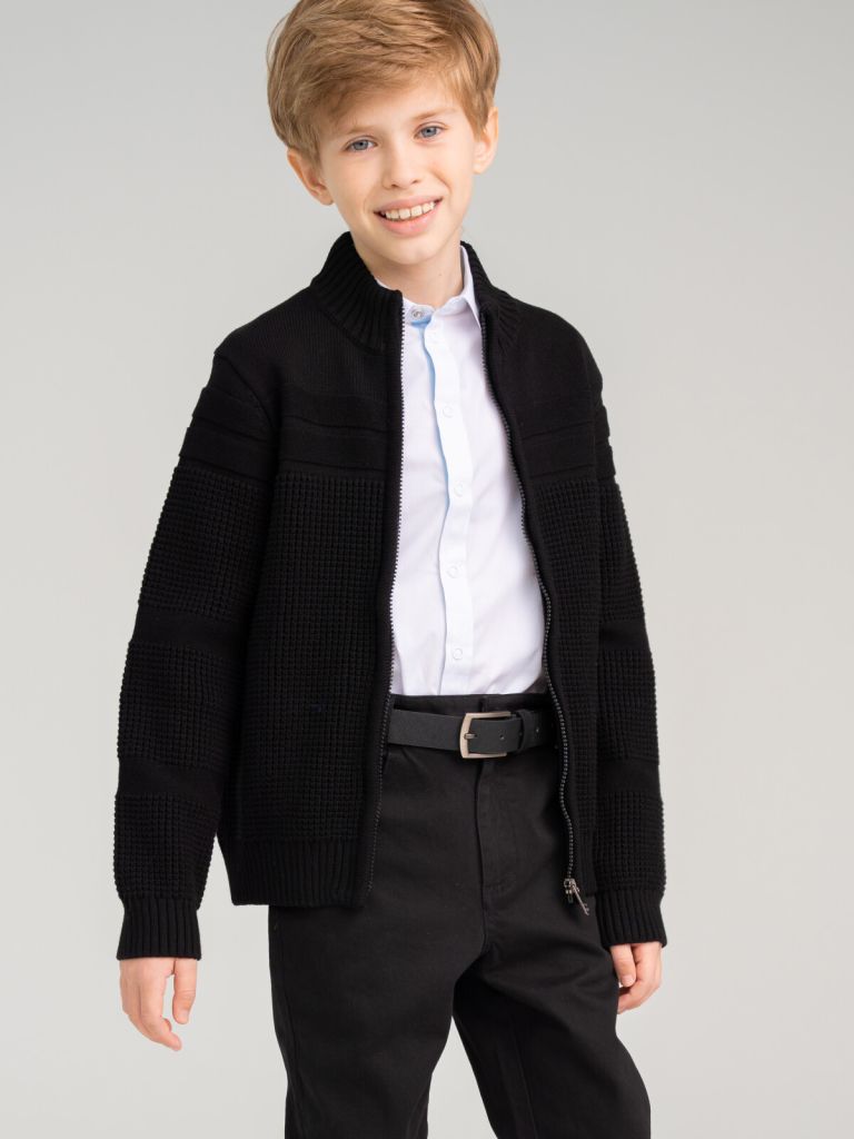 Модный чёрный вязаный кардиган в школу для мальчика от PlayToday — это уверенность, практичность и стиль на каждый день. Любимая вещь в гардеробе школьника!