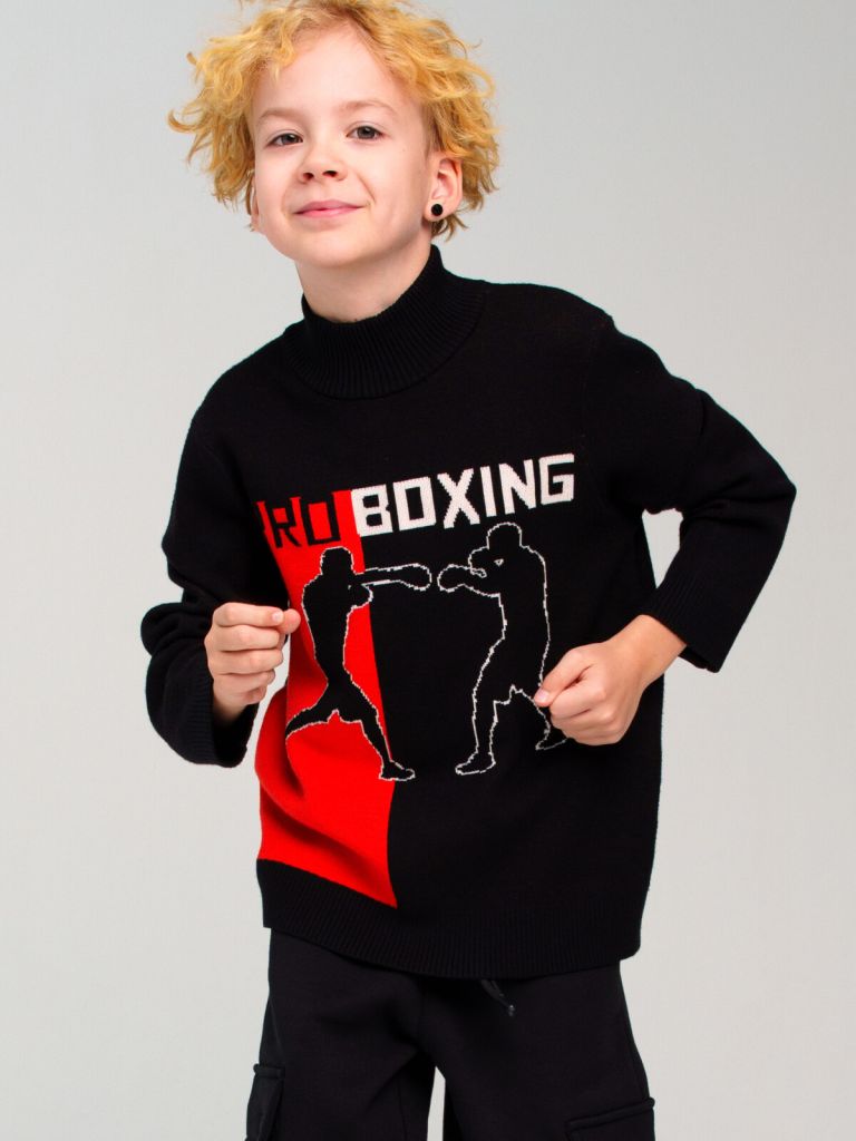 Свитер для мальчика подростка. Модный свитер жаккардовой вязки с высоким содержанием вискозы. Вискоза хорошо поглощает влагу, отлично пропускают воздух. Изделия приятны к телу, и не вызывают раздражения. Модель из капсульной коллекции PRO BOXING (ПРО БОКСИНГ). Соберите полный образ в едином стиле!