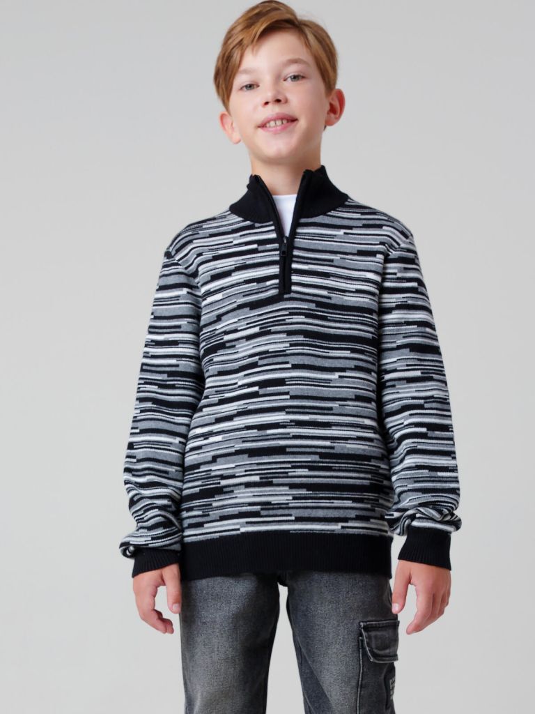 Свитер подростковый с воротником на молнии для мальчика от PlayToday — сочетание уюта, практичности и стильного дизайна для холодного сезона.