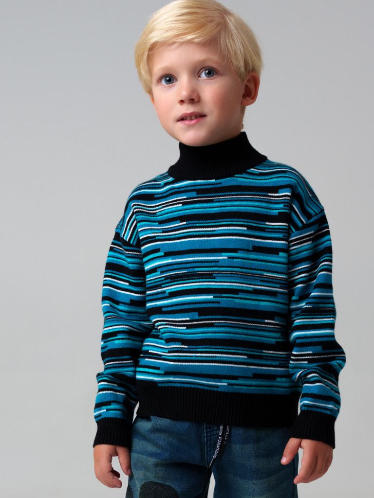 Тёплый детский вязаный джемпер с воротником-стойкой для мальчика от PlayToday — практичная и мягкая модель для прогулок, садика и дома в холодное время года. Джемпер выполнен из приятного на ощупь трикотажа на основе вискозы и нейлона, который отлично сохраняет тепло и не колется.