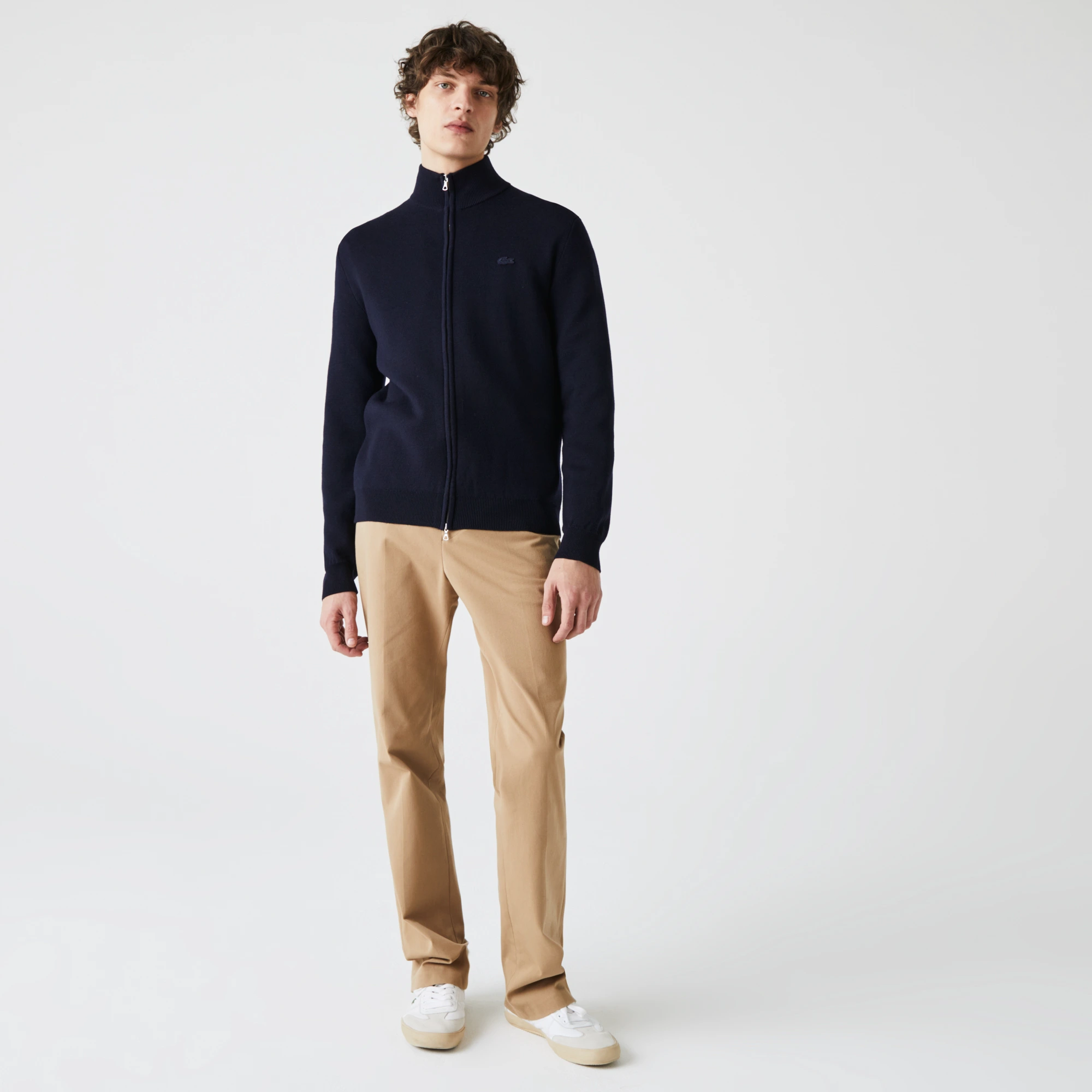 Тонкая шерсть мериноса\На молнии\Эластичный воротник, манжеты и нижний край\Логотип в тон изделия\Материал: 100% шерсть\Рост модели 186 см, \Размер одежды 4