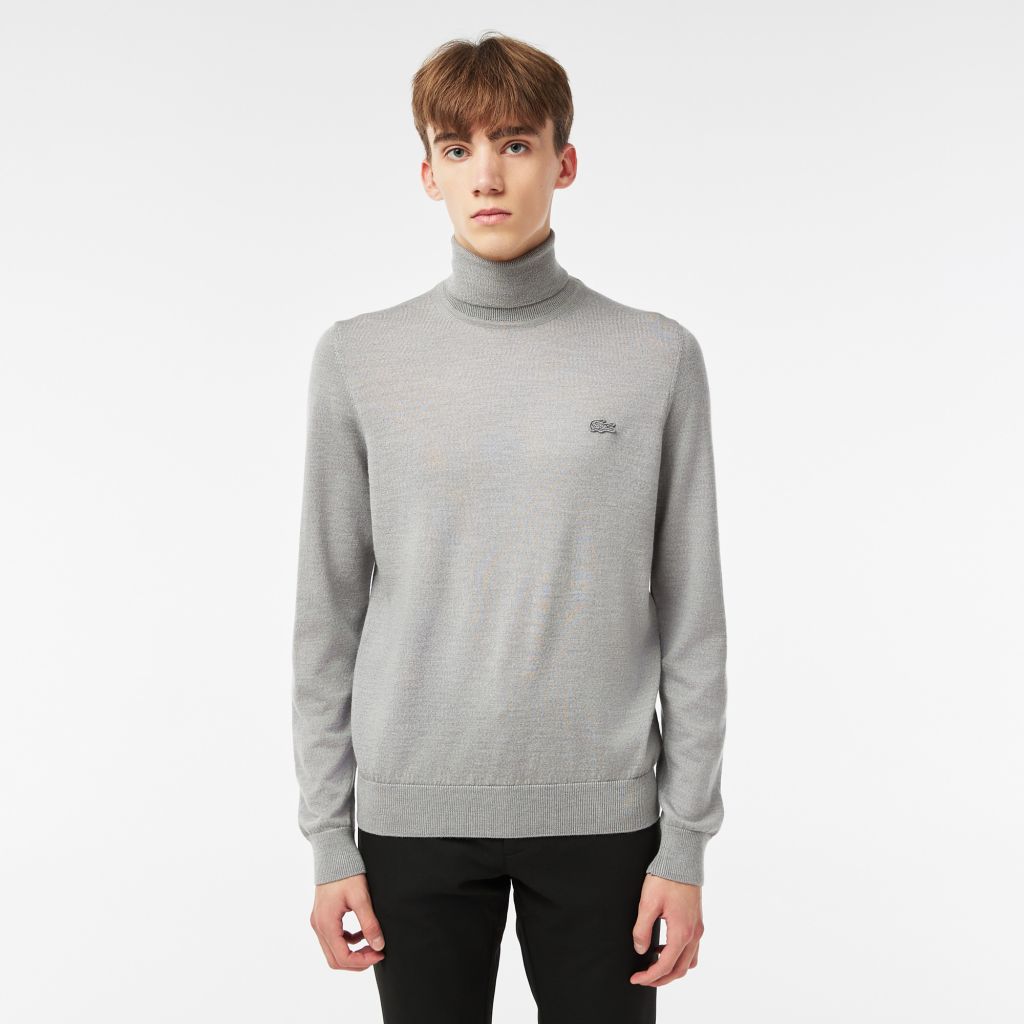 Джерси из мериносовой шерсти\Водолазка в рубчик\Эластичный воротник, манжеты и нижний край\Логотип на груди в тон изделия\Материал: 100% шерсть\Рост модели 186 см, \Размер одежды 4