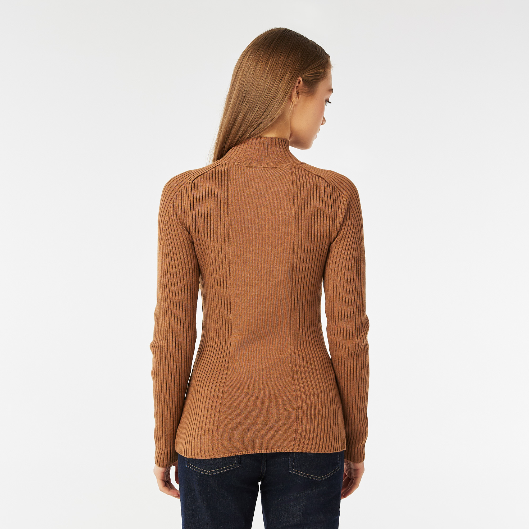 Высокий воротник;\Спущенная линия плеч;\Логотип на груди\Материал: 63% вискоза 25% мериносовая шерсть 9% полиамид 3% эластан\Рост модели 175 см, размер одежды 36