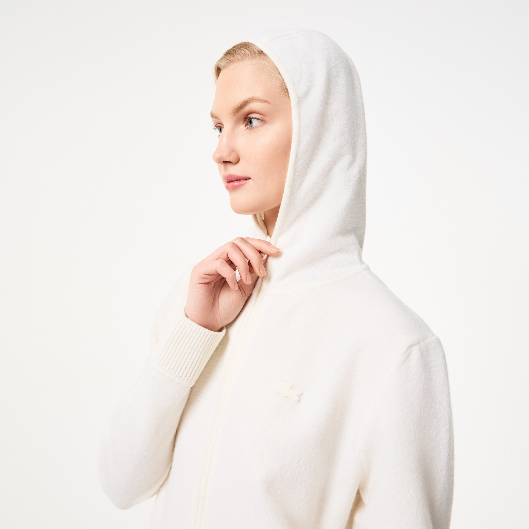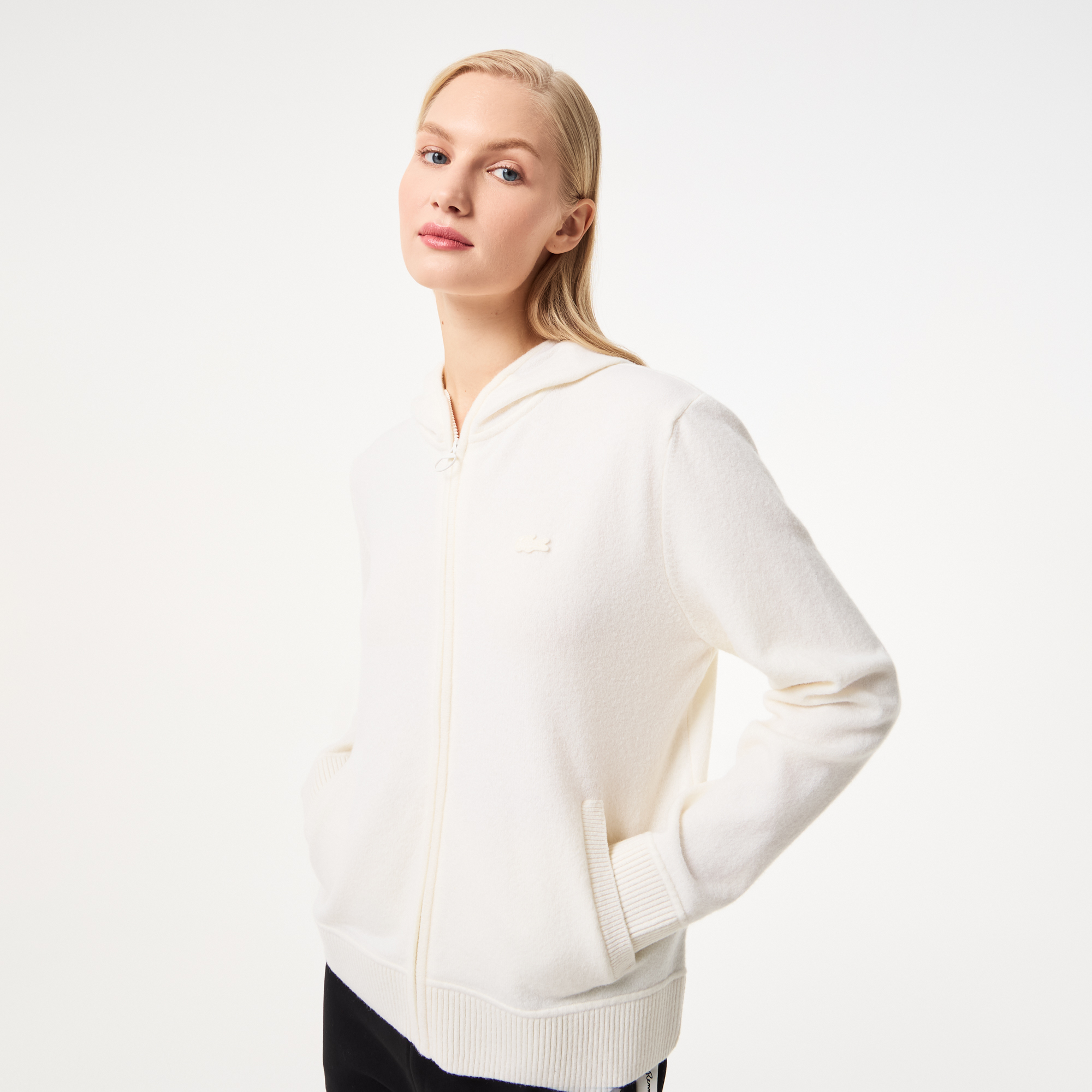 Женский шерстяной свитер-толстовка Lacoste на молнии с капюшоном
