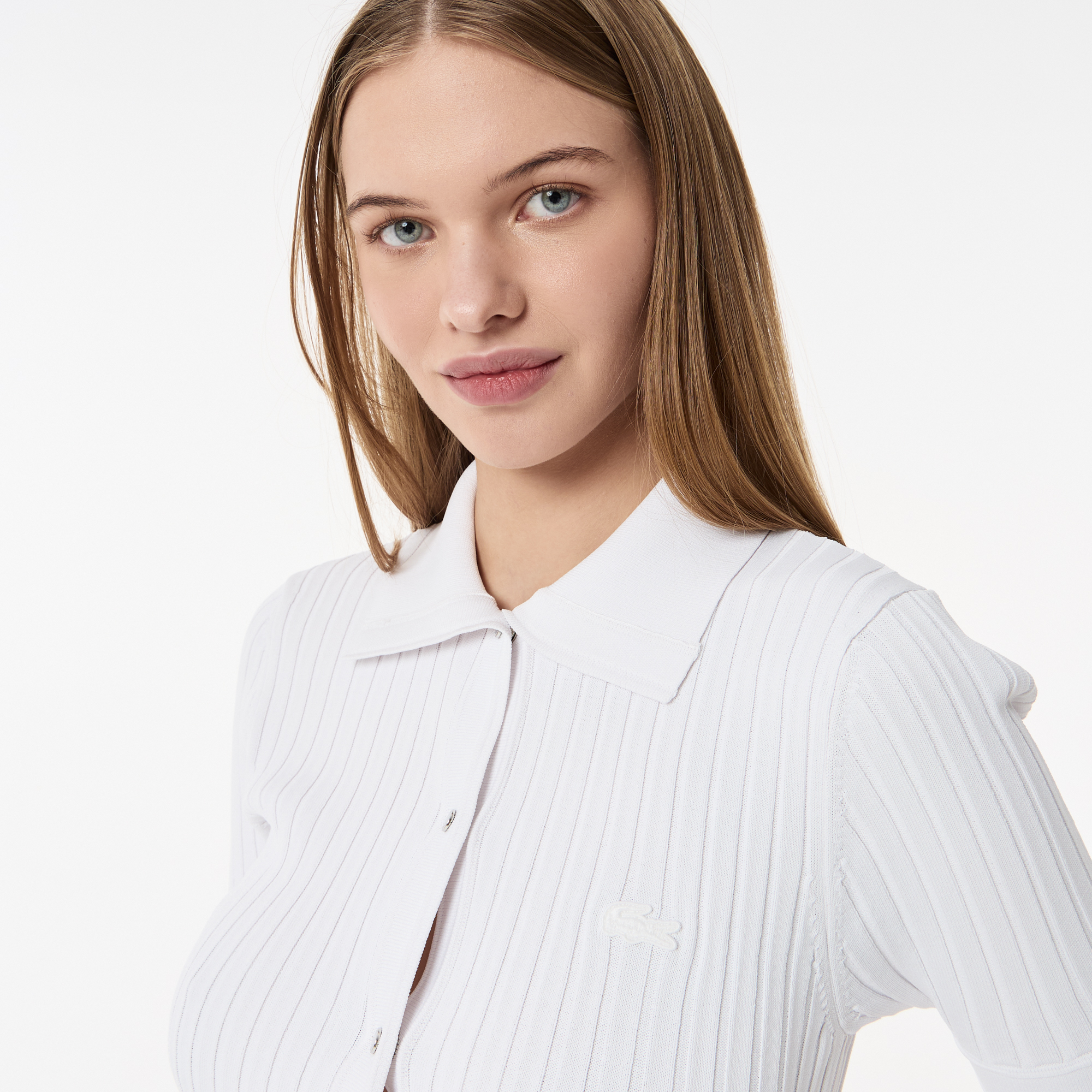Женский лёгкий свитер Lacoste с коротким рукавом и воротником-поло
