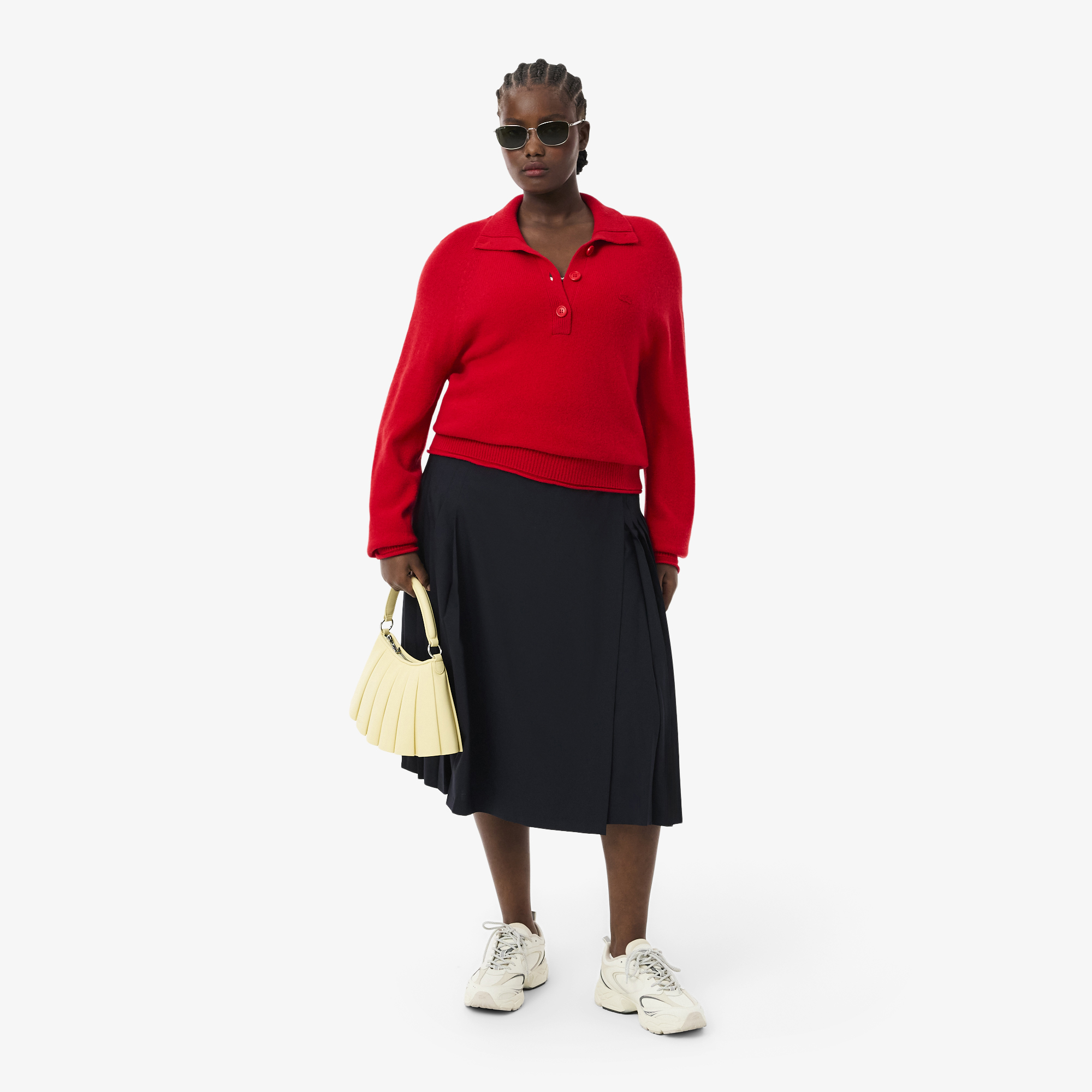 Свитер с высоким воротом из кардной шерсти \ Бесшовный кардный шерстяной трикотаж из экологически чистых материалов для животных \ Классический крой, удобные рукава \ Плотный трикотаж 7-го калибра \ Высокая горловина на пуговицах \ Закатанная отделка на ш