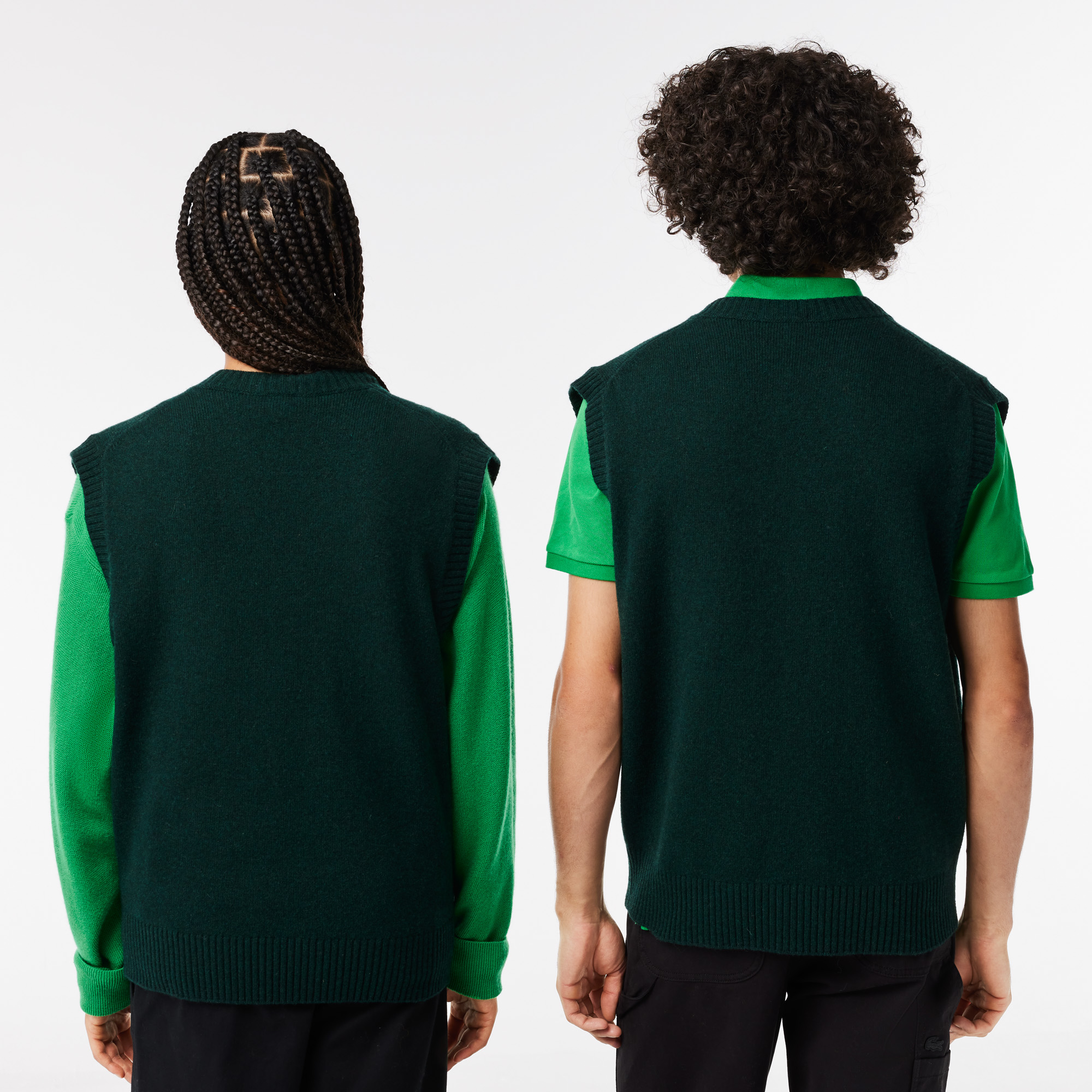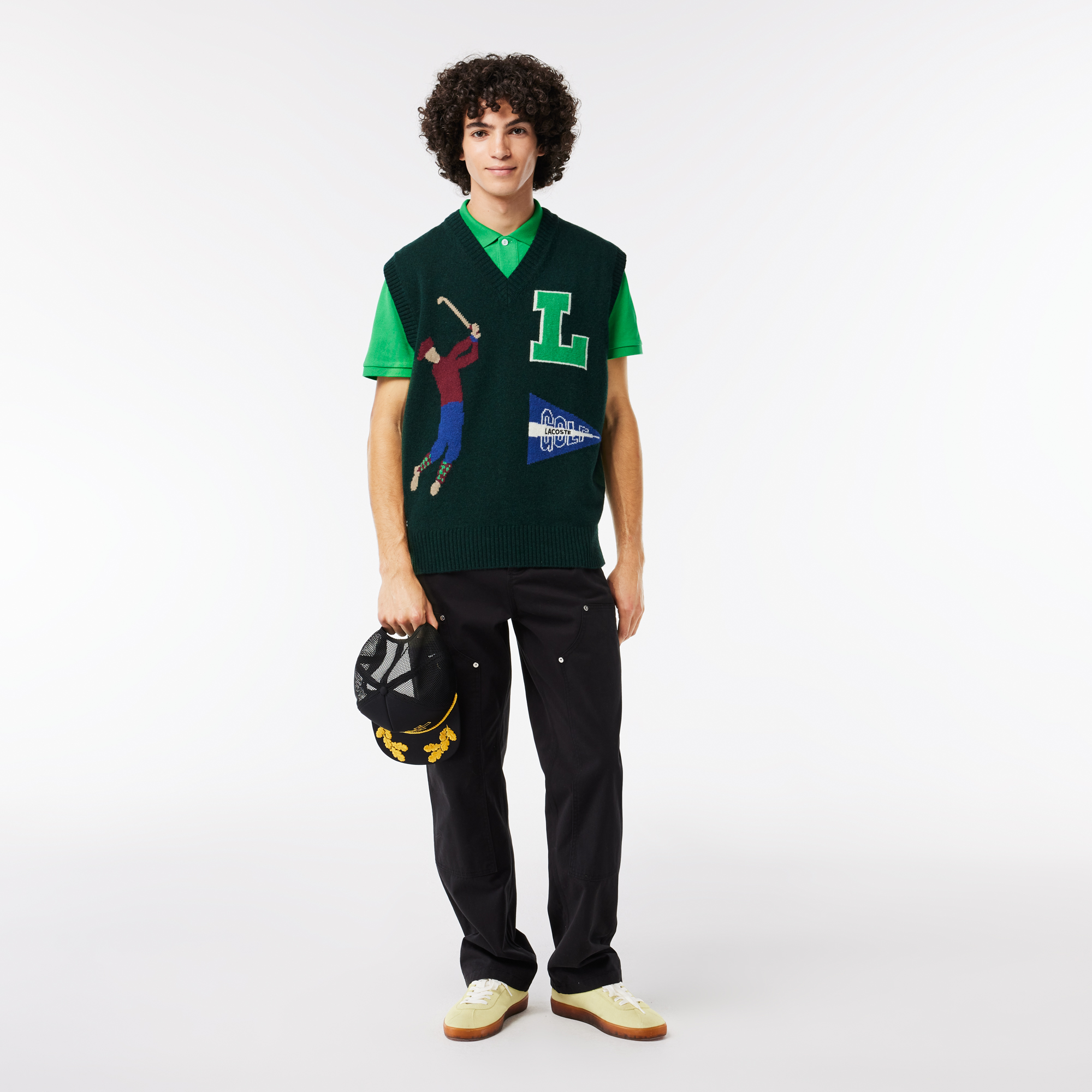 V-вырез\Переработанная шерсть и полиамид\Контрастный графический принт\Логотип на нижнем крае\Материал: 80% шерсть 20% полиамид