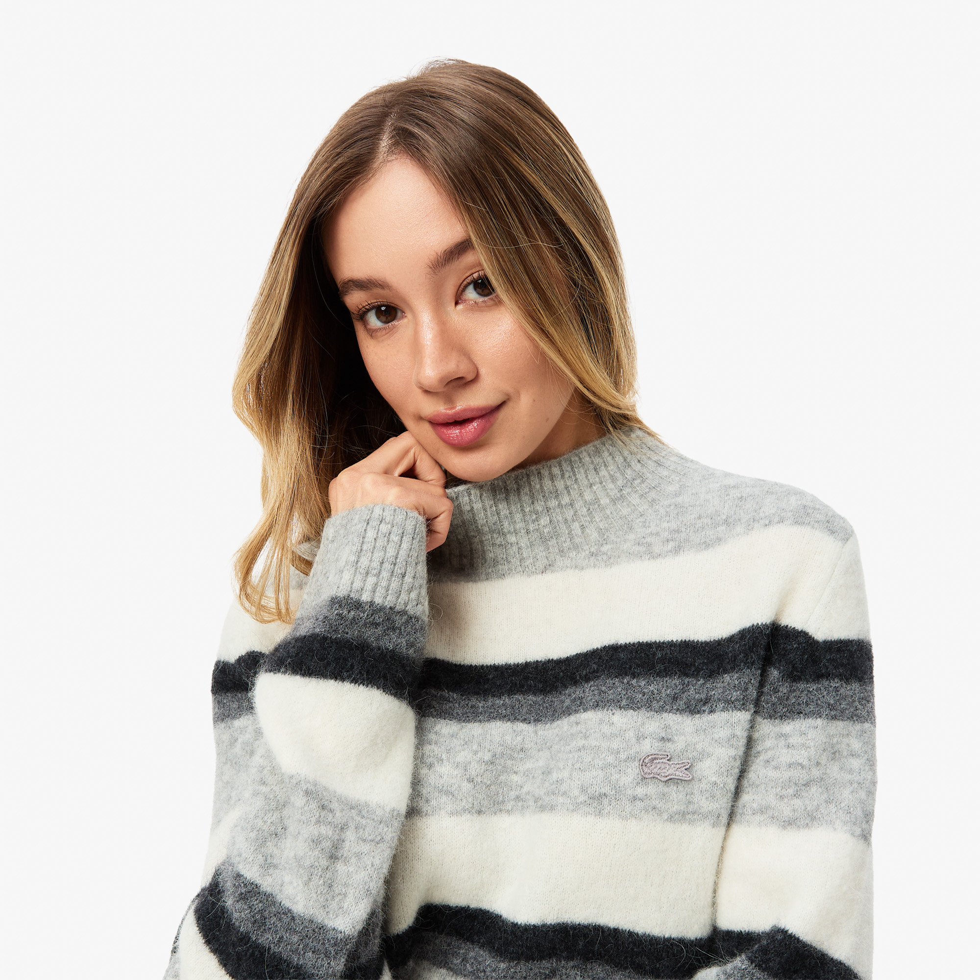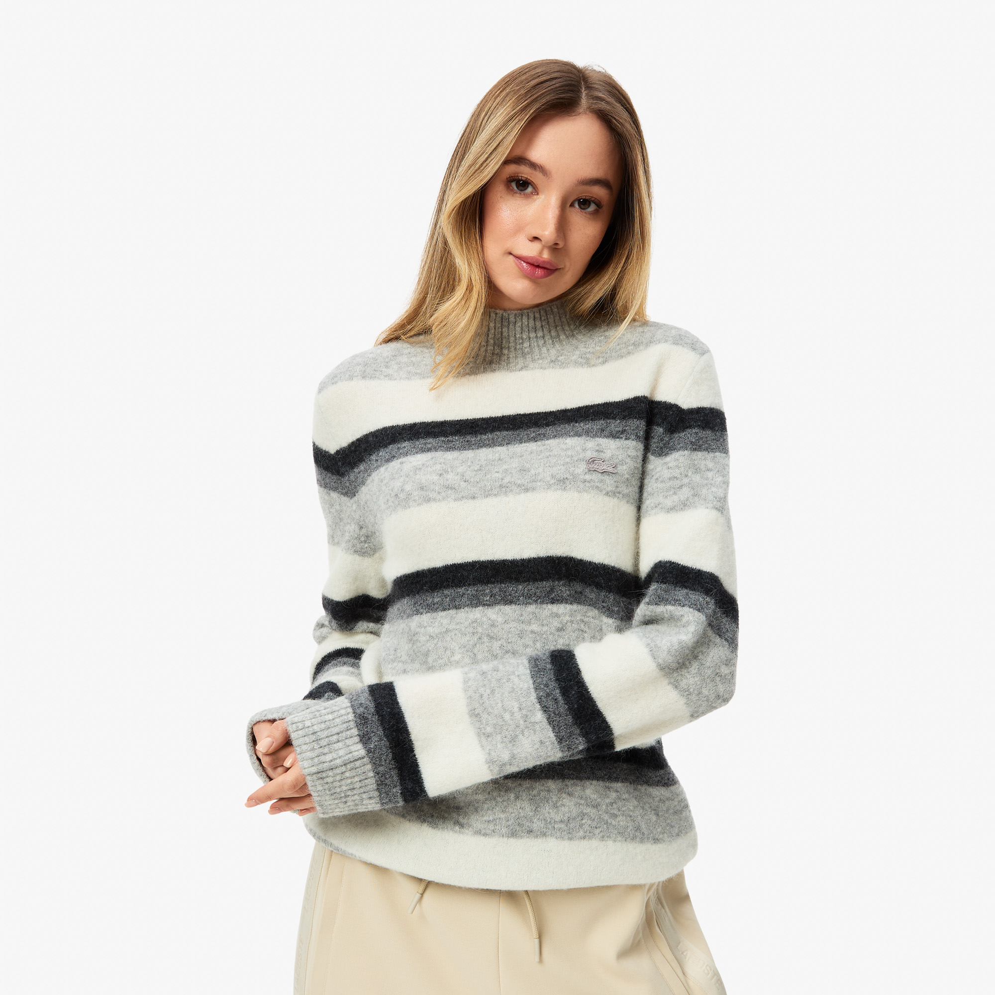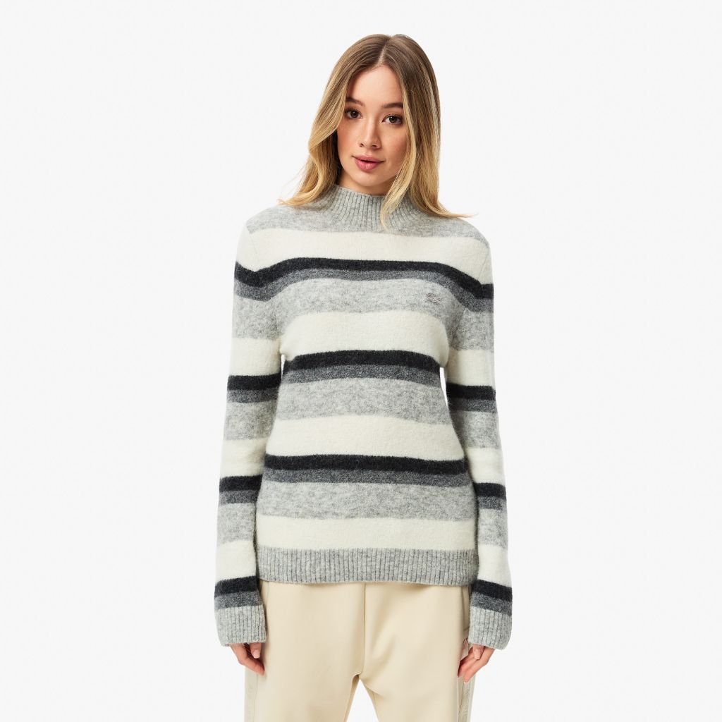 Женский свитер Lacoste в полоску с высоким воротом классического кроя Свитеры Lacoste | V4.Ru: Маркетплейс