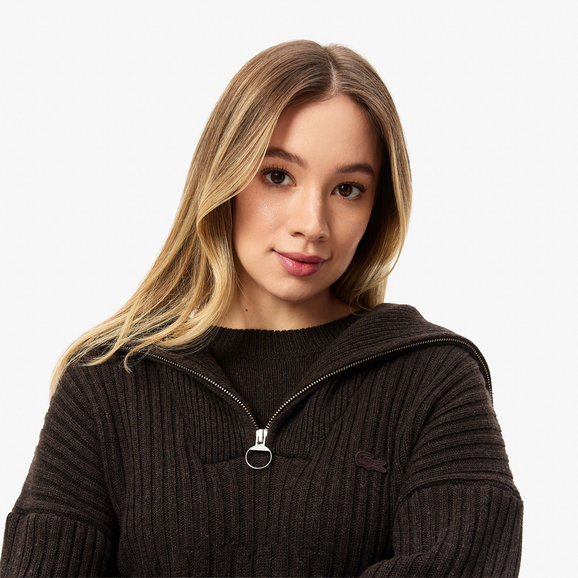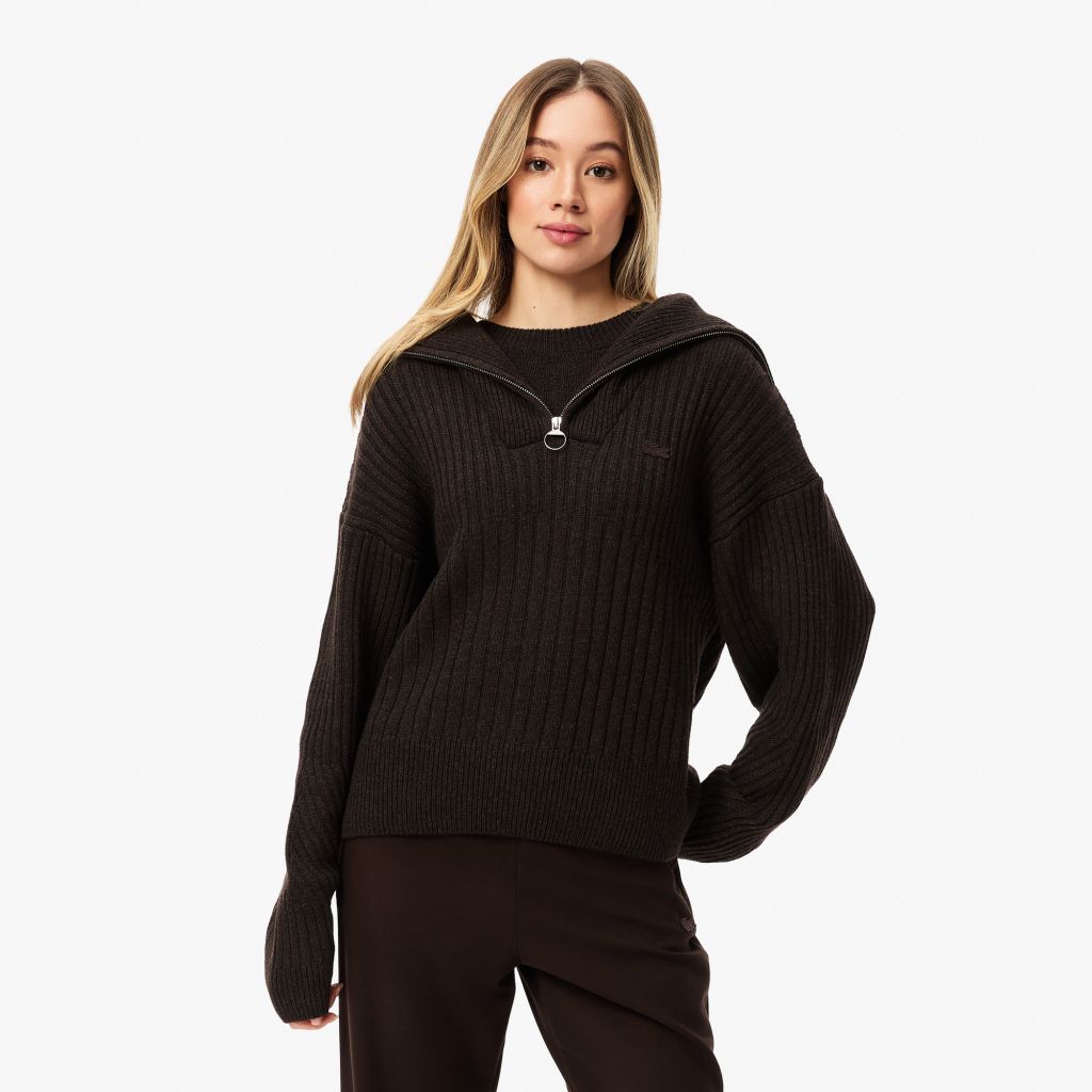 Женский свитер Lacoste с высоким воротом на молнии классического кроя