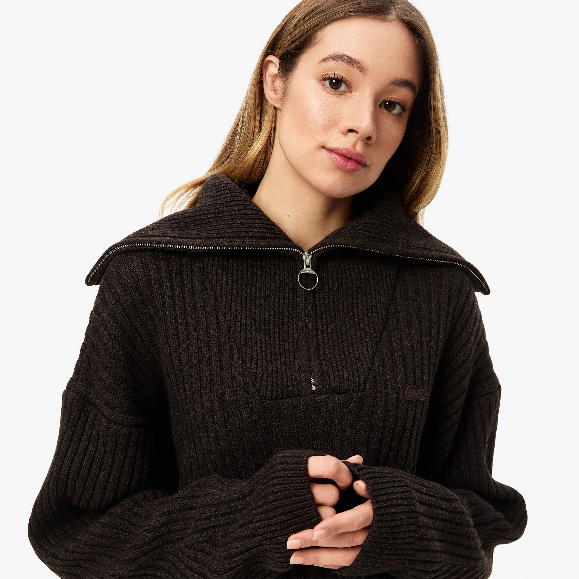 Женский свитер Lacoste с высоким воротом на молнии классического кроя Свитеры Lacoste | V4.Ru: Маркетплейс