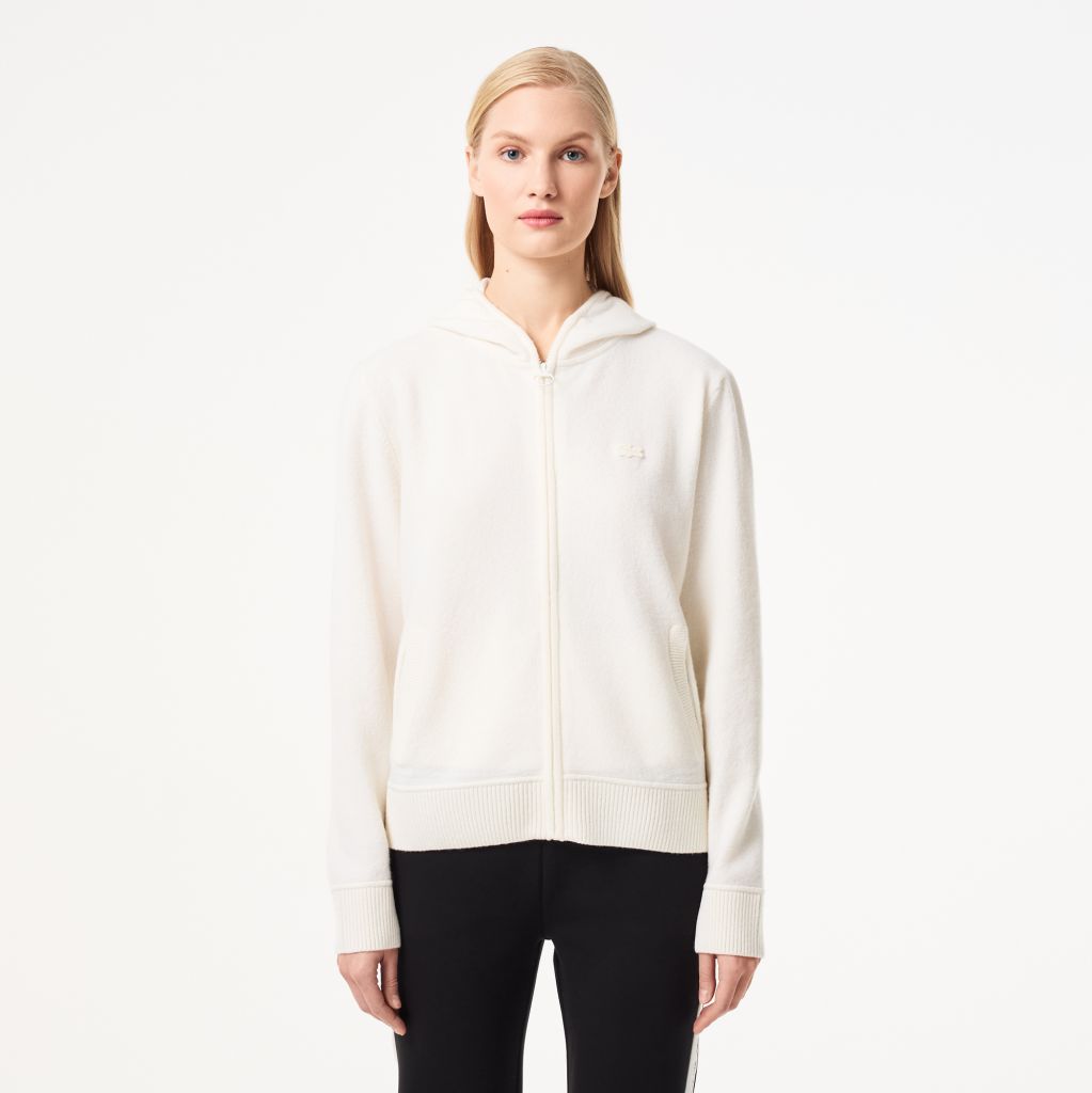 Женский шерстяной свитер-толстовка Lacoste на молнии с капюшоном