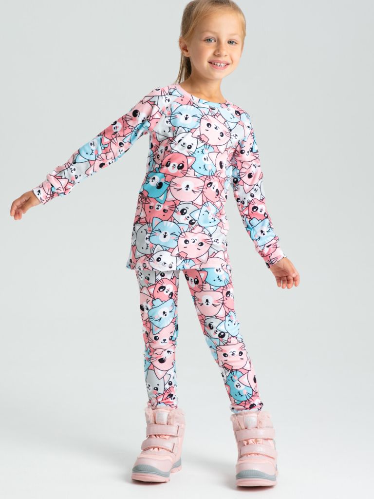 Термокомплект: брюки, лонгслив. Плотность: 240гр/м, микроначес. Идеальный вариант для активного отдыха. Гладкий материал с лицевой стороны, с изнаночной стороны утеплен начесом. Эластан в составе обеспечивает комфортную носку и свободу движений. Благодаря смесовому составу ткани и плетению термобелье отводит лишнюю влагу, сохраняя комфортный микроклимат под одеждой.*температурный режим является рекомендованным, необходимо учитывать уровень активности ребенка и многослойность поддевочной одежды (флис, верхняя одежда).