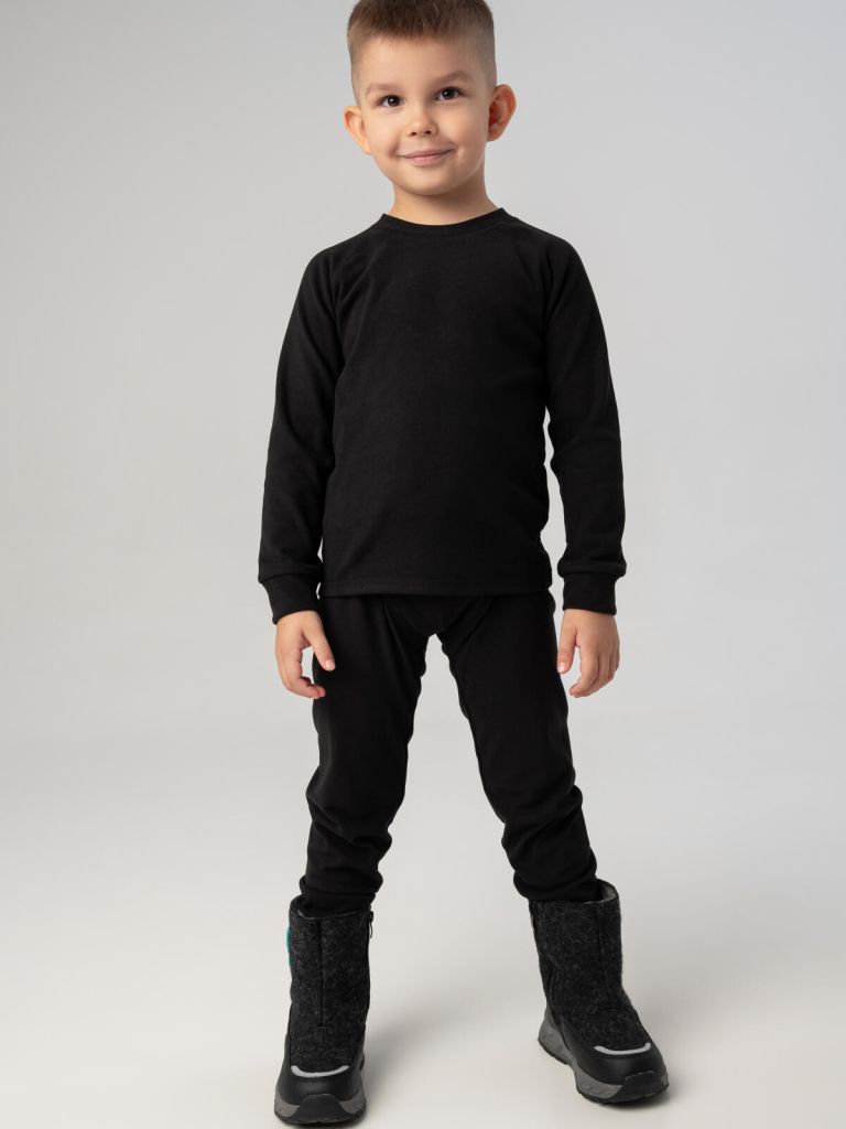 Детское однотонное черное термобельё для мальчика от PlayToday — идеальный первый слой для холодного сезона. Комплект из кофты и брюк с начёсом сохраняет тепло тела, эффективно отводит влагу и быстро сохнет. Мягкий эластичный материал не сковывает движений и обеспечивает комфортную посадку, а плоские швы не натирают даже при длительной носке. Благодаря удобному крою и нежной к телу ткани, термобельё отлично подходит как для прогулок на свежем воздухе, так и для активных занятий спортом.