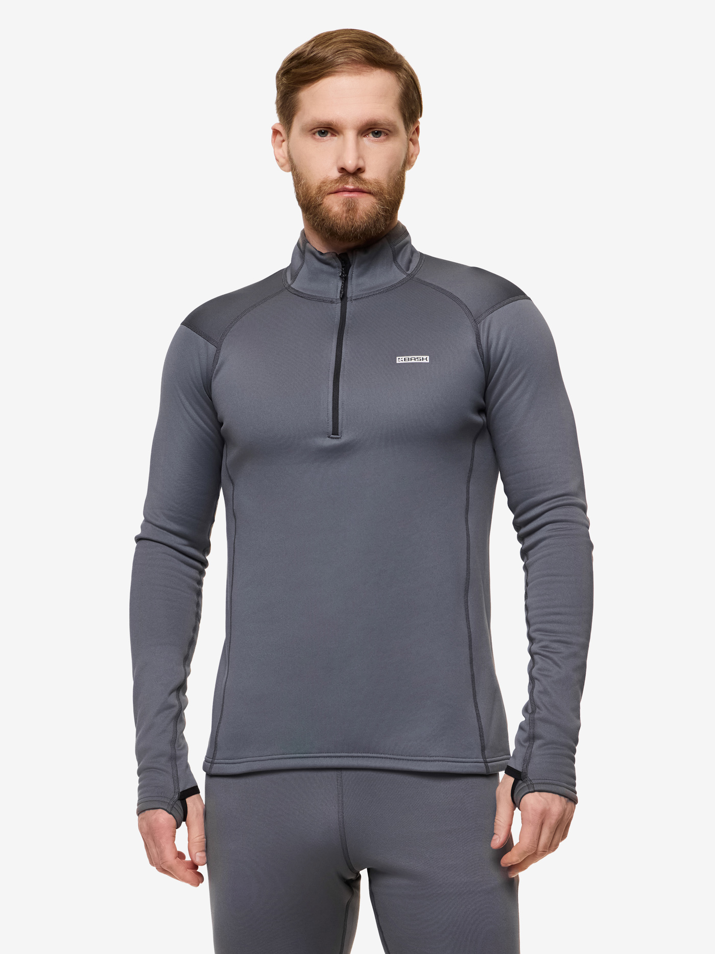 Теплое мужское термобелье-верх на молнии из суперэластичного материала. Ткань с гладким прочным плетением с лицевой стороны и мягким плотным ворсом внутри отводит излишки влаги, удерживает тепло. Модель подойдет для альпинизма, туризма, зимней охоты, рыбалки, катания на горных лыжах и других видов активного отдыха.