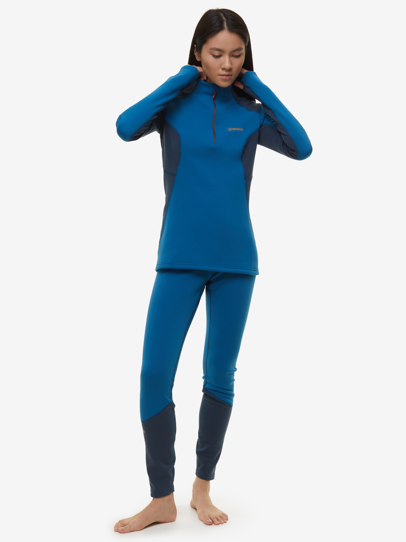 Теплое женское термобелье-верх на молнии из суперэластичного материала. Ткань с гладким прочным плетением с лицевой стороны и мягким плотным ворсом внутри отводит излишки влаги, удерживает тепло. Модель подойдет для альпинизма, туризма, катания на горных лыжах и других видов активного отдыха.ВЕРХ. Кальсоны приобретаются отдельно. Артикул: 21026