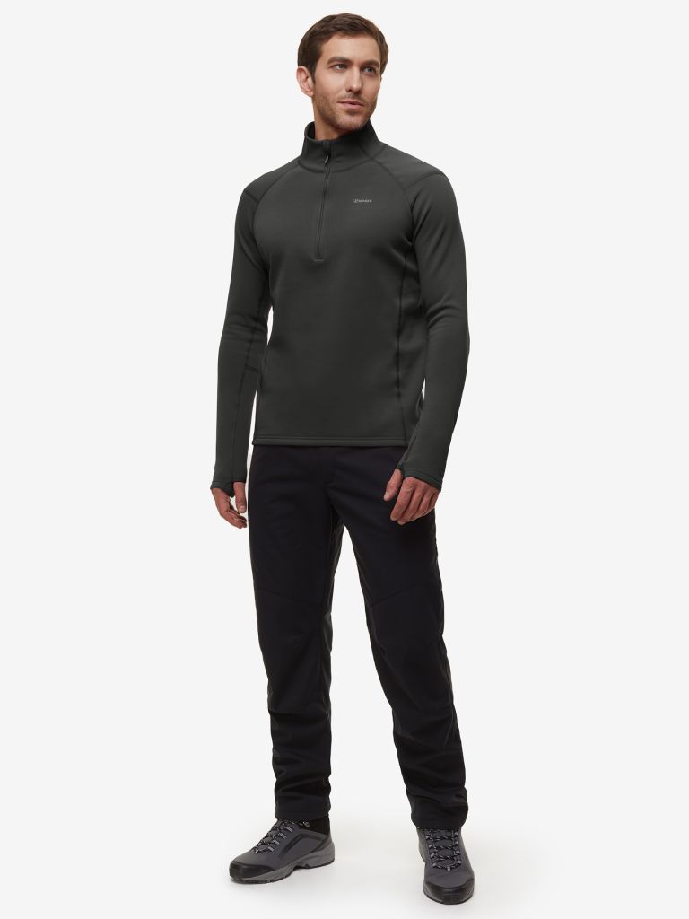 Теплое мужское термобелье-верх на молнии из суперэластичного материала. Ткань с гладким прочным плетением с лицевой стороны и мягким плотным ворсом внутри отводит излишки влаги, удерживает тепло. Модель подойдет для альпинизма, туризма, зимней охоты, рыбалки, катания на горных лыжах и других видов активного отдыха.