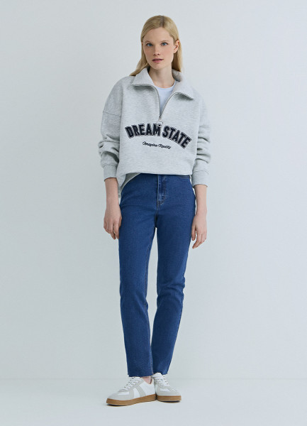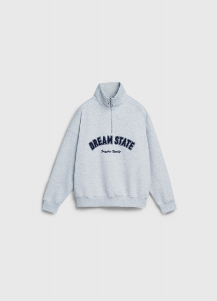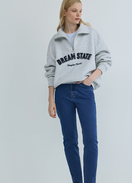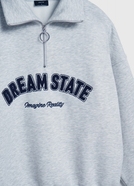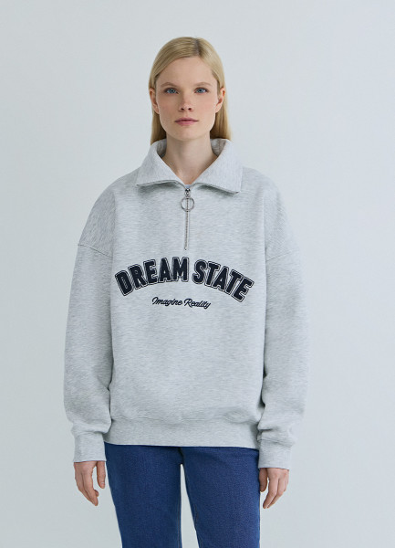 Свитшот с принтом и воротником на молнии, Серый
