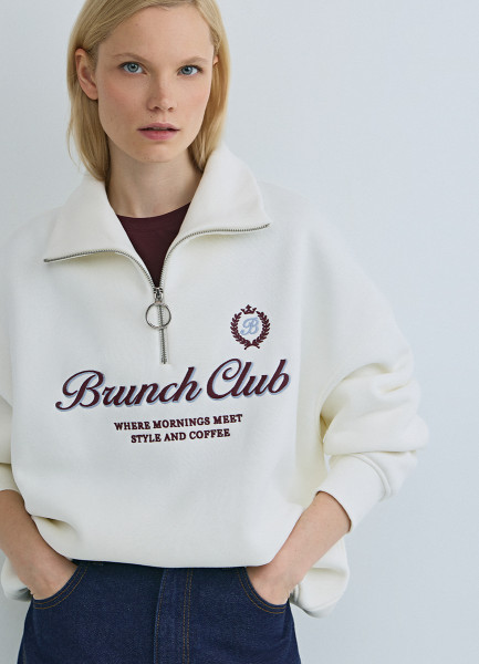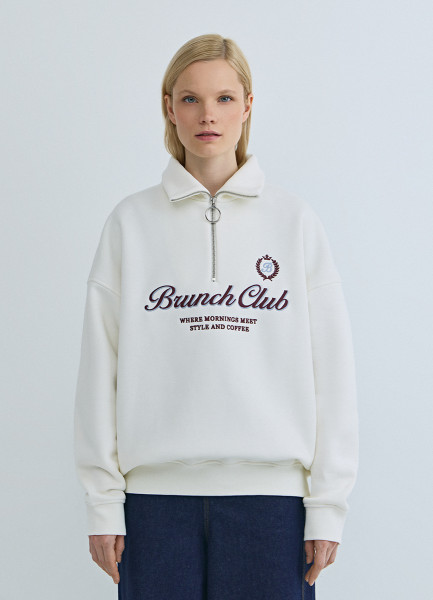 Толстовка с воротником-стойкой на молнии, Коричневый