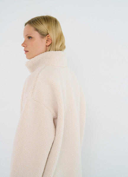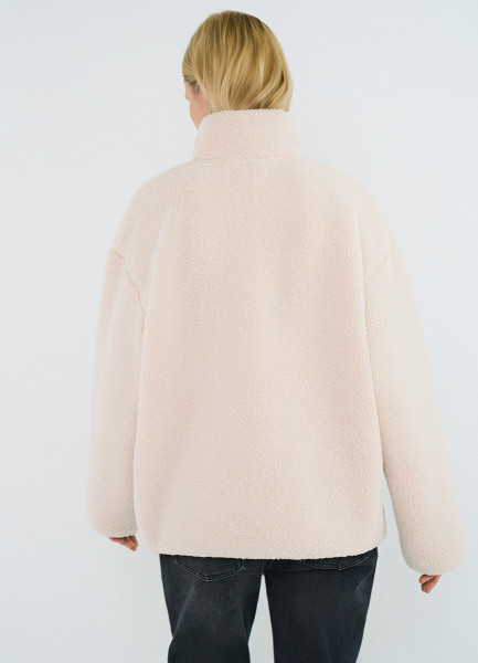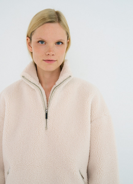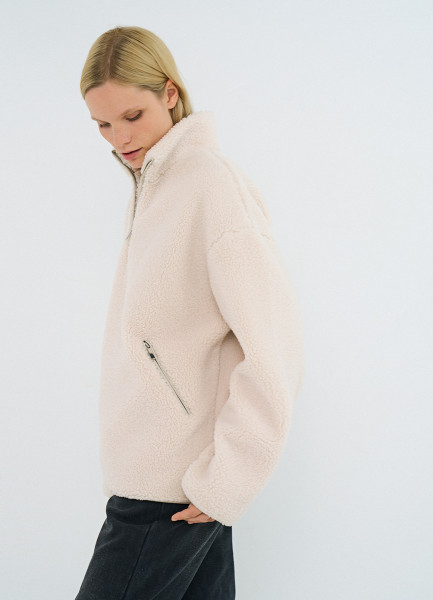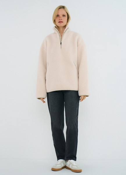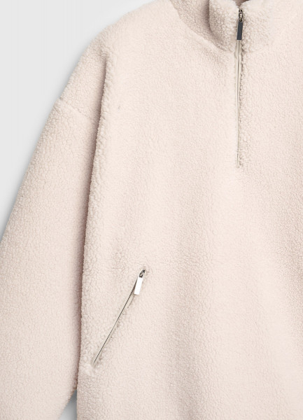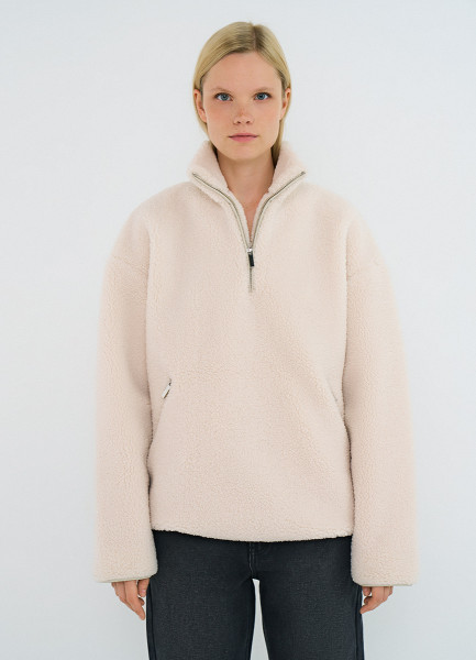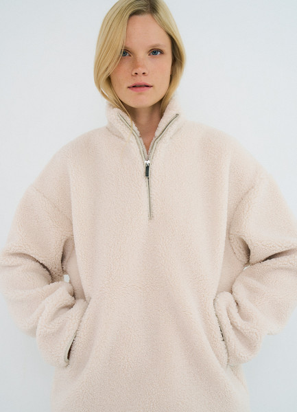 Толстовка из шерпы с воротником на молнии, Бежевый