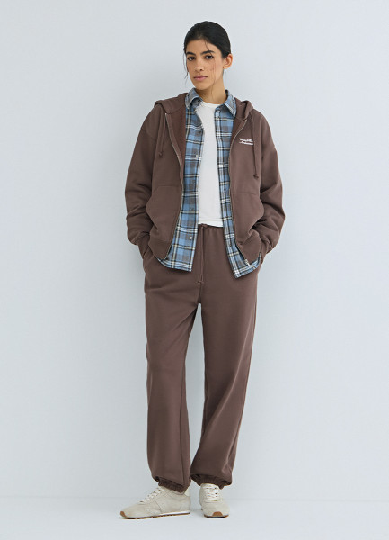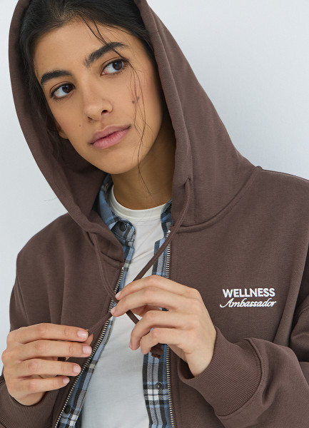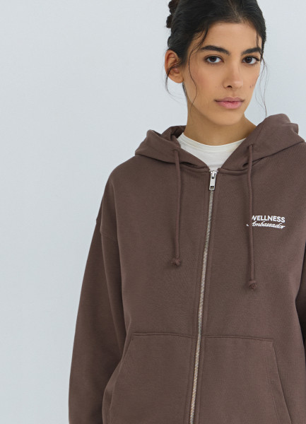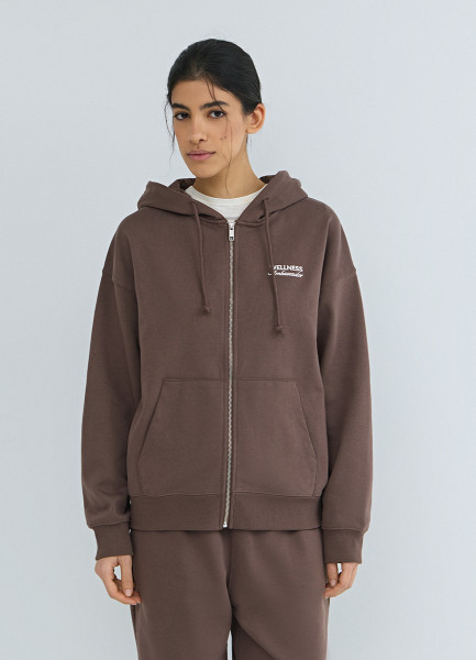 Толстовка на молнии с вышивкой, Коричневый