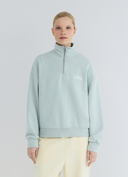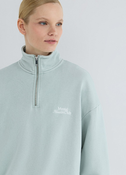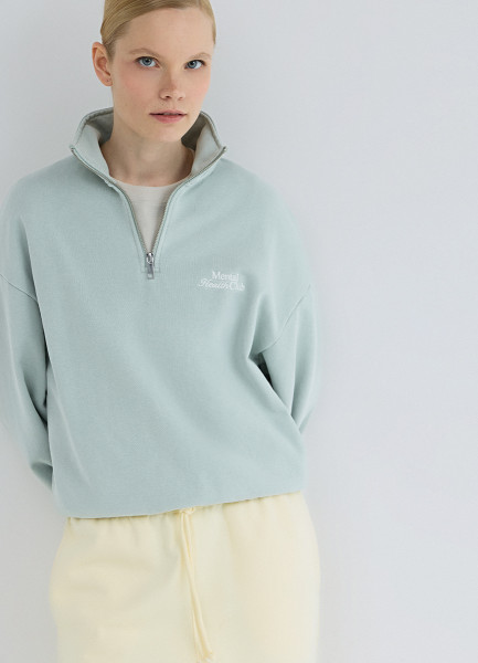 Толстовка с воротником-стойкой на молнии, Зеленый