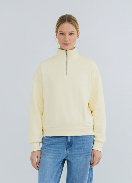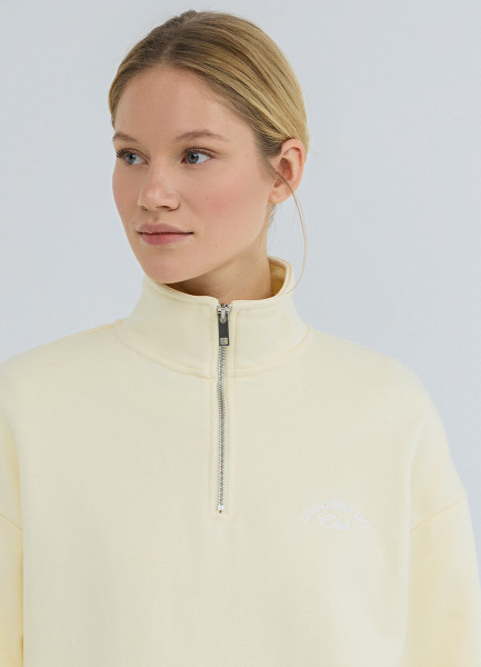 Толстовка из шерпы с воротником на молнии, Бежевый