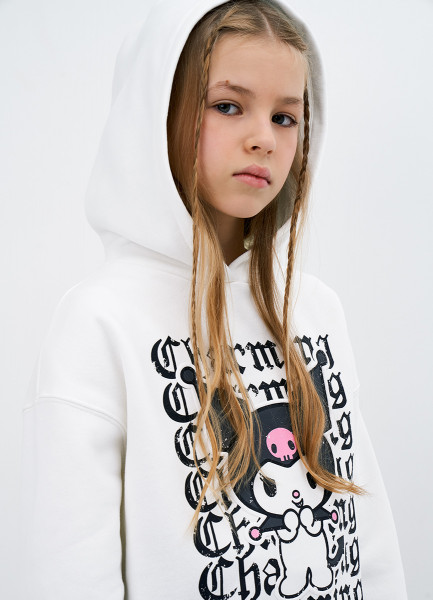 Худи с принтом для девочек, Белый