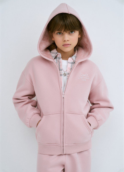 Свитшот с воротником-стойкой на молнии для девочек, Белый