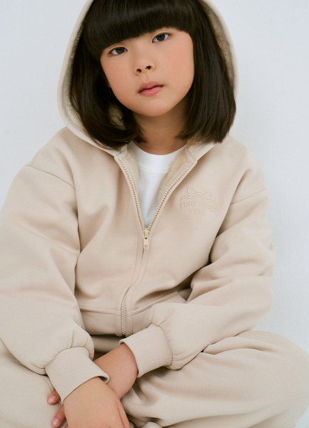 Свитшот с воротником-стойкой на молнии для девочек, Белый