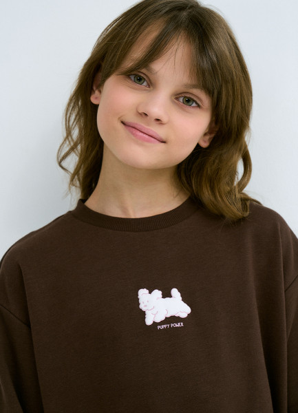 Свитшот с принтом для девочек, Коричневый