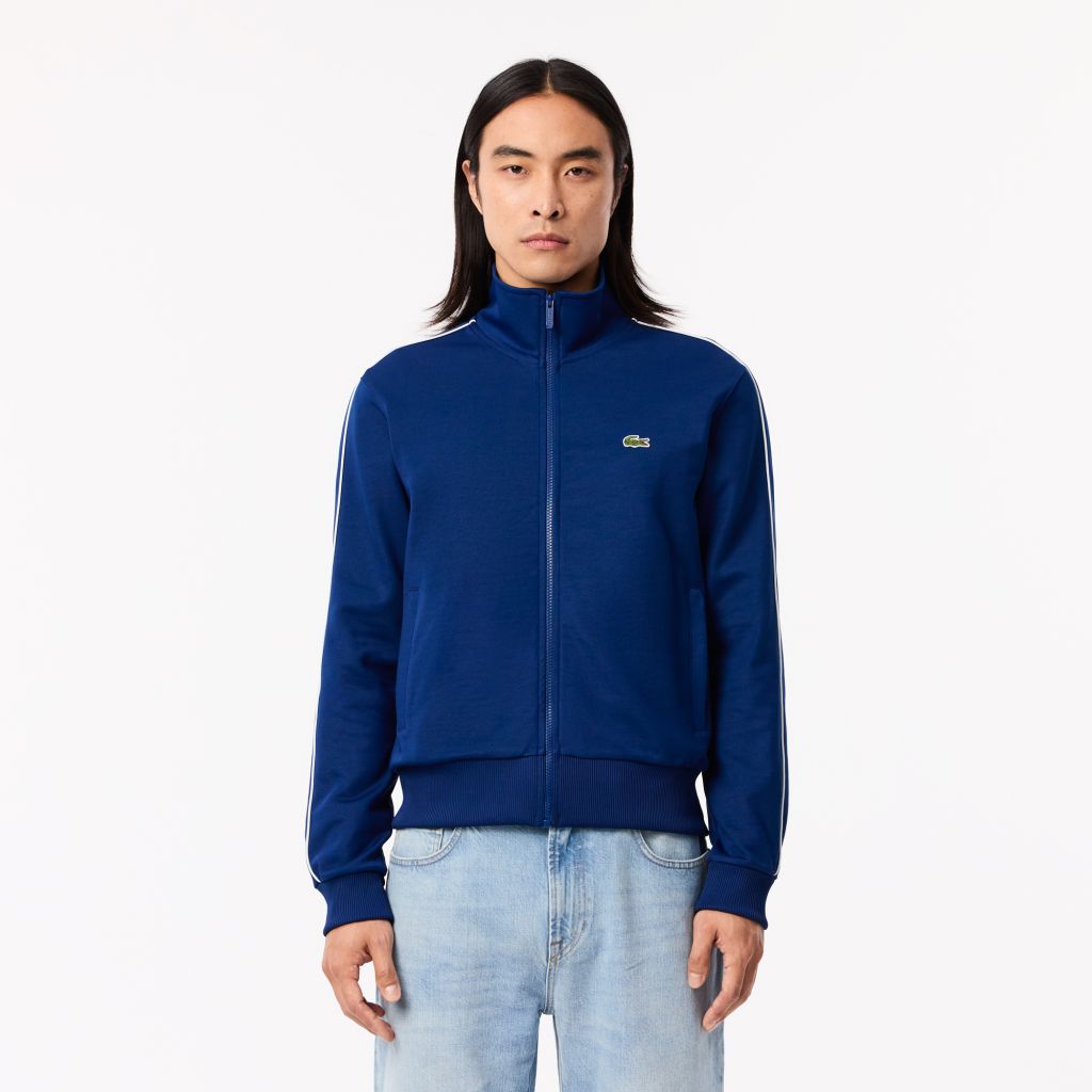 Piqué из износостойкой ткани интерлок\обычный, слегка приталенный крой\два кармана на молнии\на молнии\воротник-стойка\контрастные полосы на рукавах\эластичные манжеты и нижний край\логотип на груди\материал: 51% переработанный полиэстер 49% органический