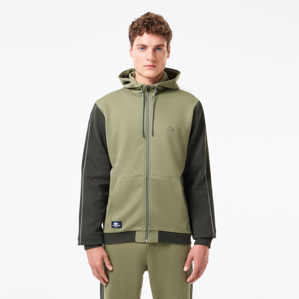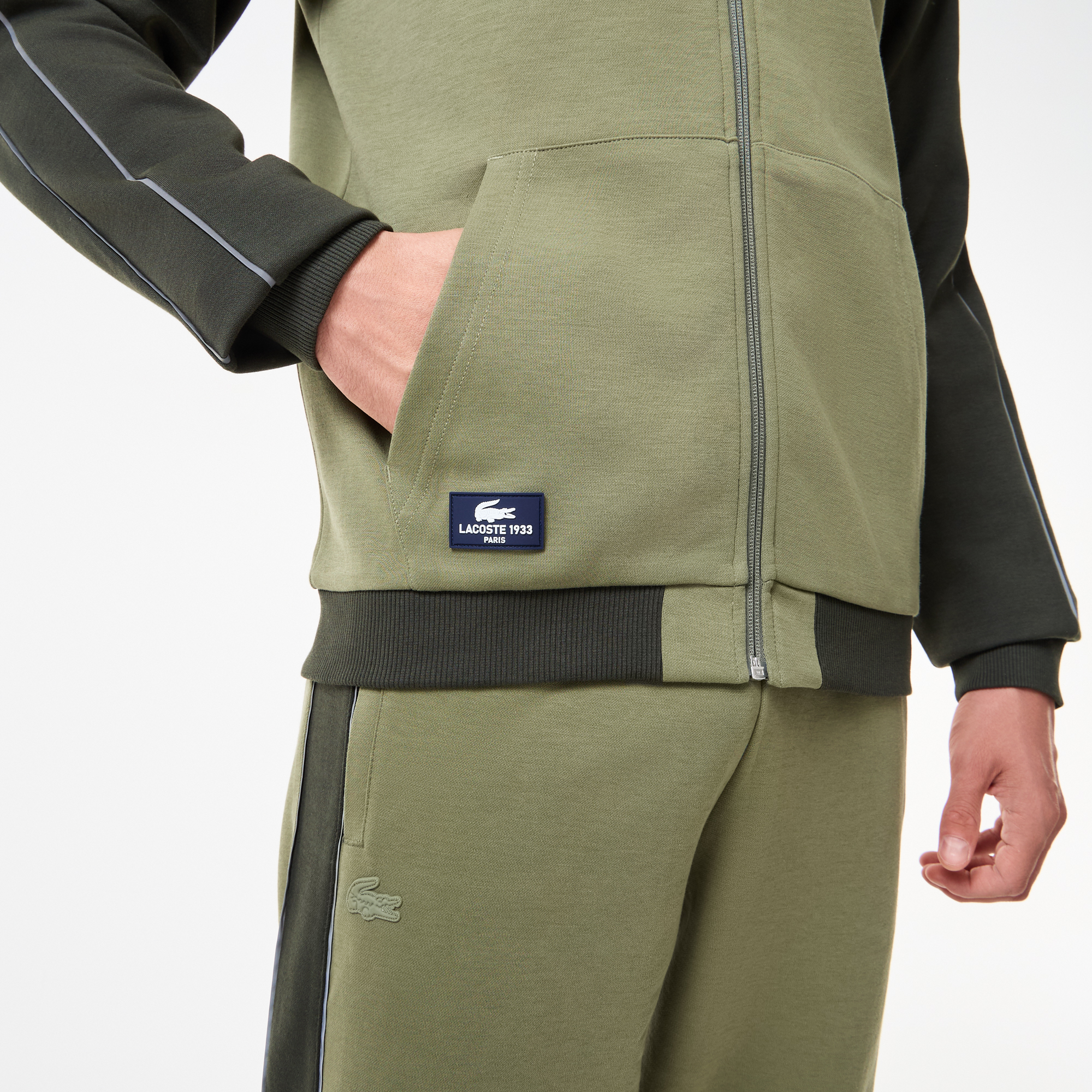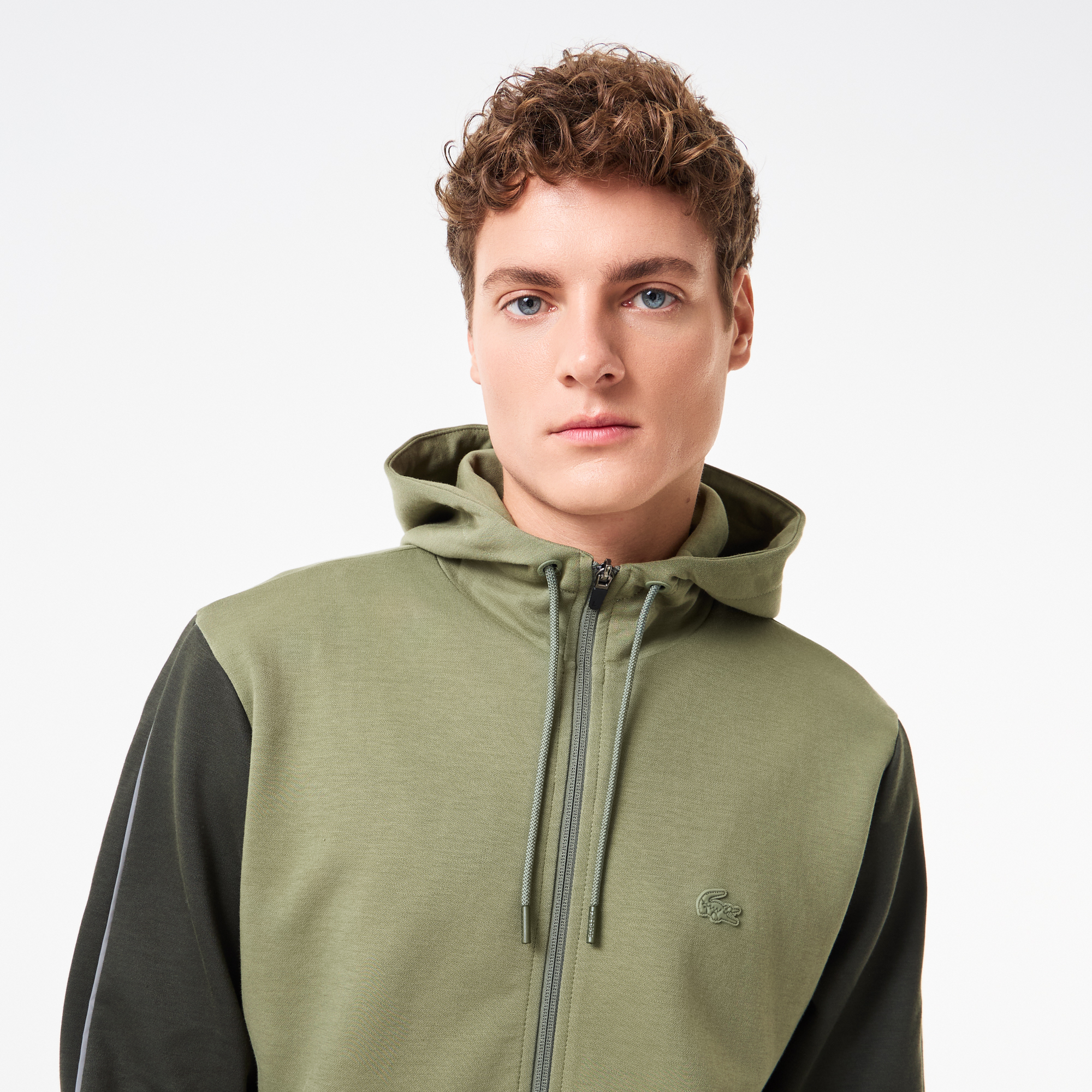 облегающий крой\Капюшон с регулируемой кулиской\Контрастные полосы на рукавах\Воротник-стойка\Эластичные манжеты и нижний край\Карман-кенгуру\Логотип в тон изделия\Материал: 88% хлопок 12% мононить\Рост модели 184 см, размер одежды 4-M