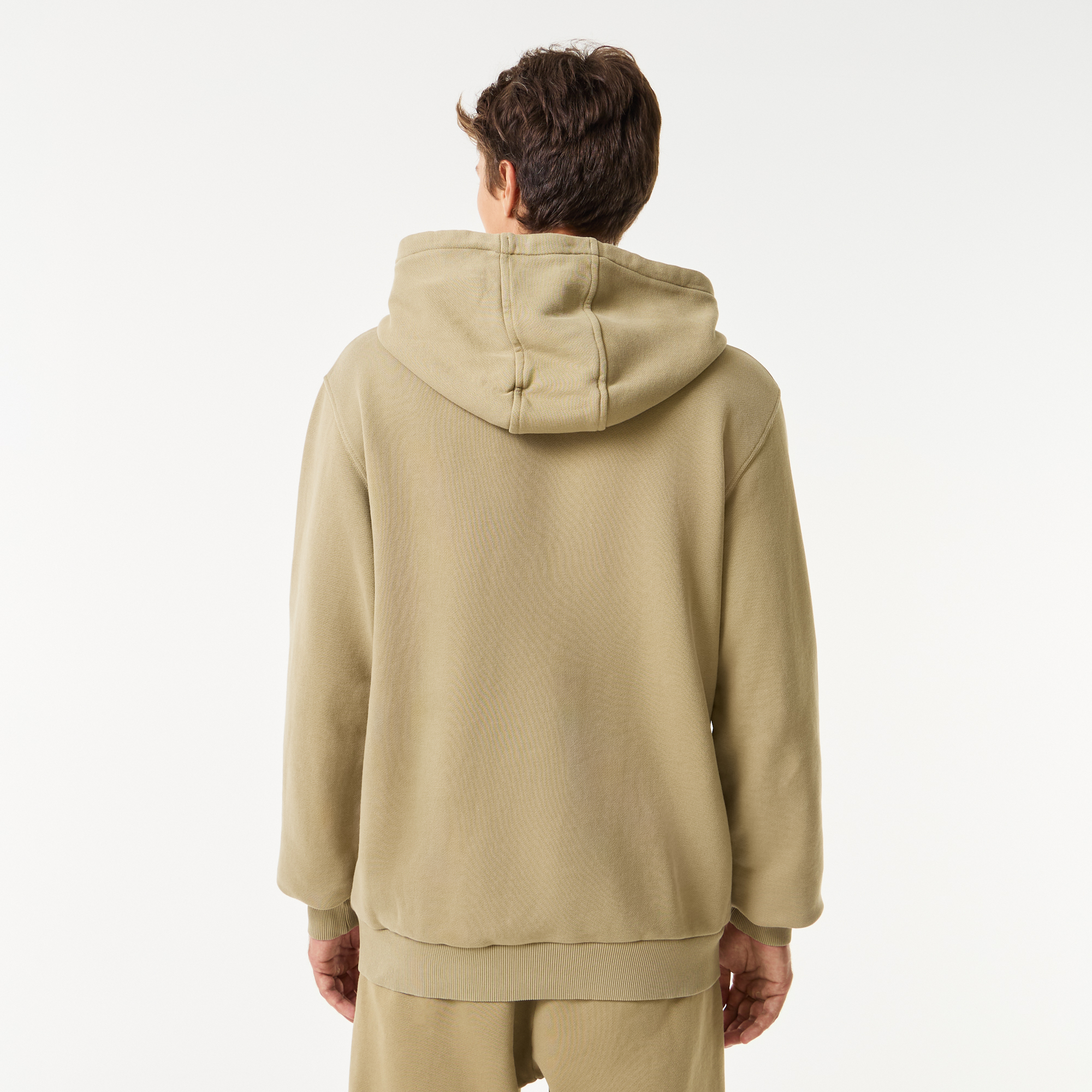 Капюшон с регулируемой кулиской\Карман-кенгуру\3-D крокодил на груди\Логотип в тон изделия на нижнем крае\Материал: 100% хлопок\Рост модели 187 см, размер одежды 4-M