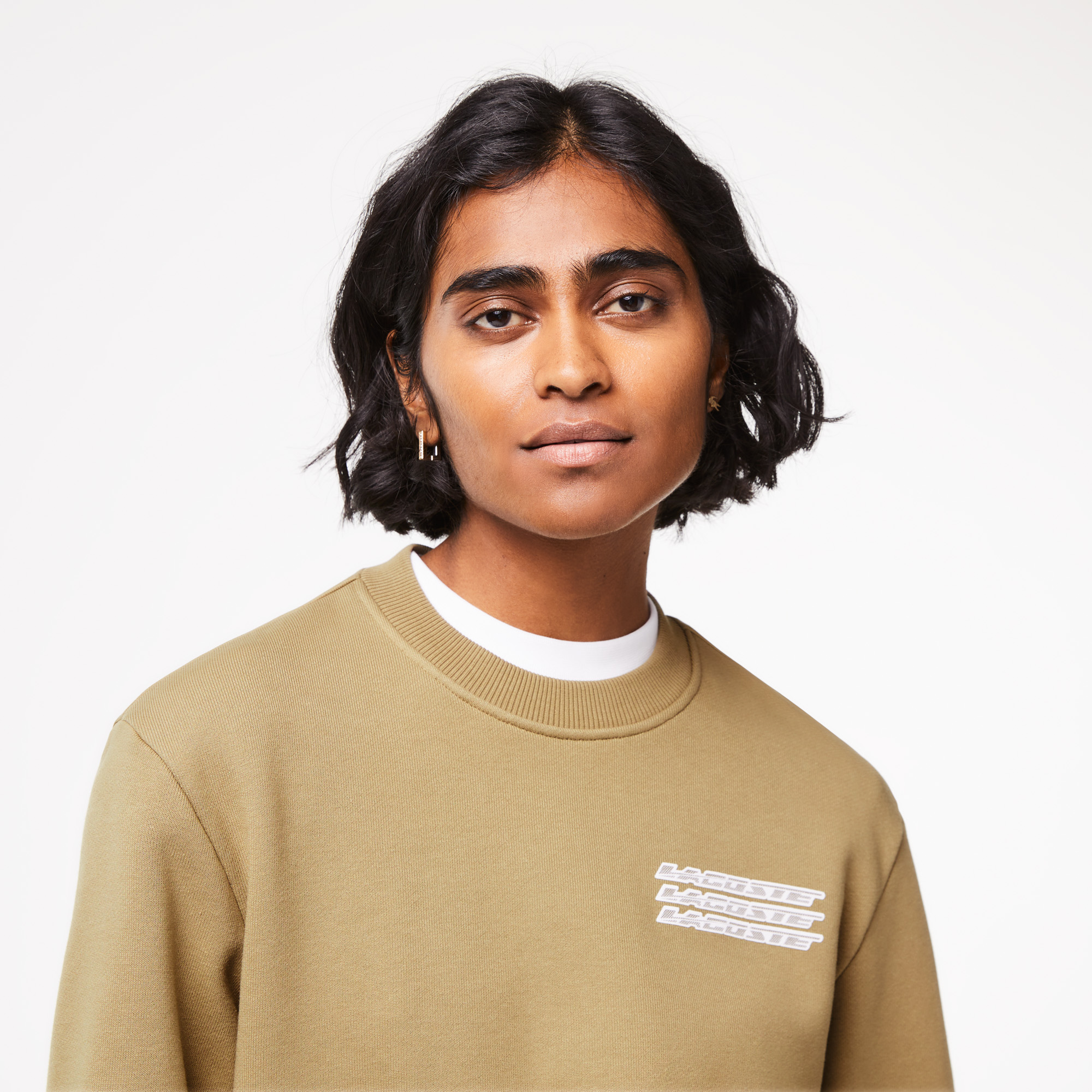 Женская толстовка с принтом из необработанного флиса Lacoste \ Свободный, удобный крой со спущенными плечами \ Ребристый вырез, пояс и манжеты \ Принт на груди \ Силиконовый значок в виде крокодила \ Это изделие имеет объемную посадку. Предпочитаете обычн