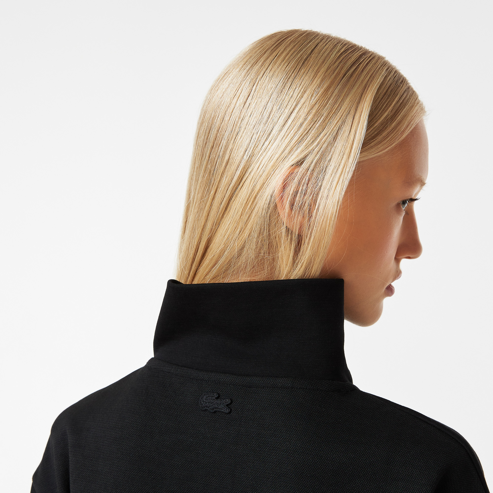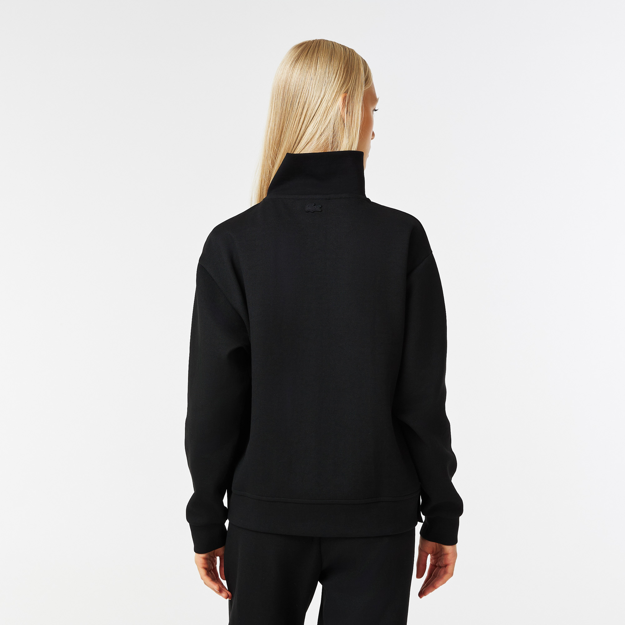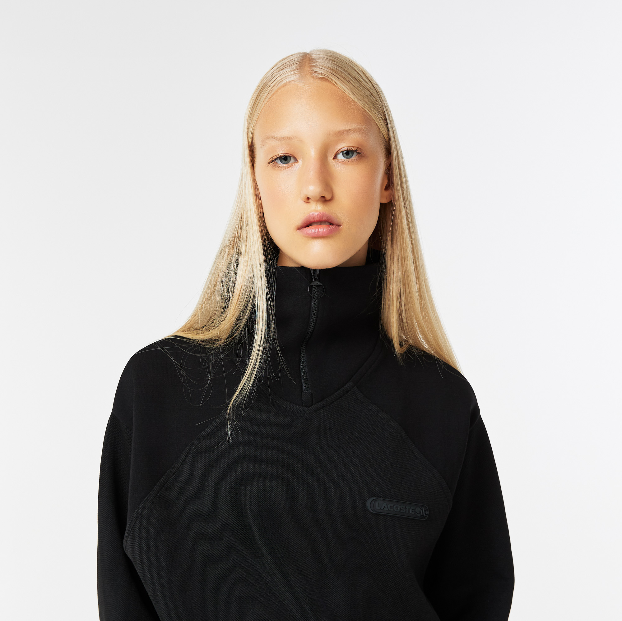 Эластичный хлопок\прямой крой\воротник-стойка на молнии\спущенная линия плеч\брендинг на груди\логотип в тон изделия на спине\материал: 75% хлопок 25% полиэстер\рост модели 174 см, размер одежды 36