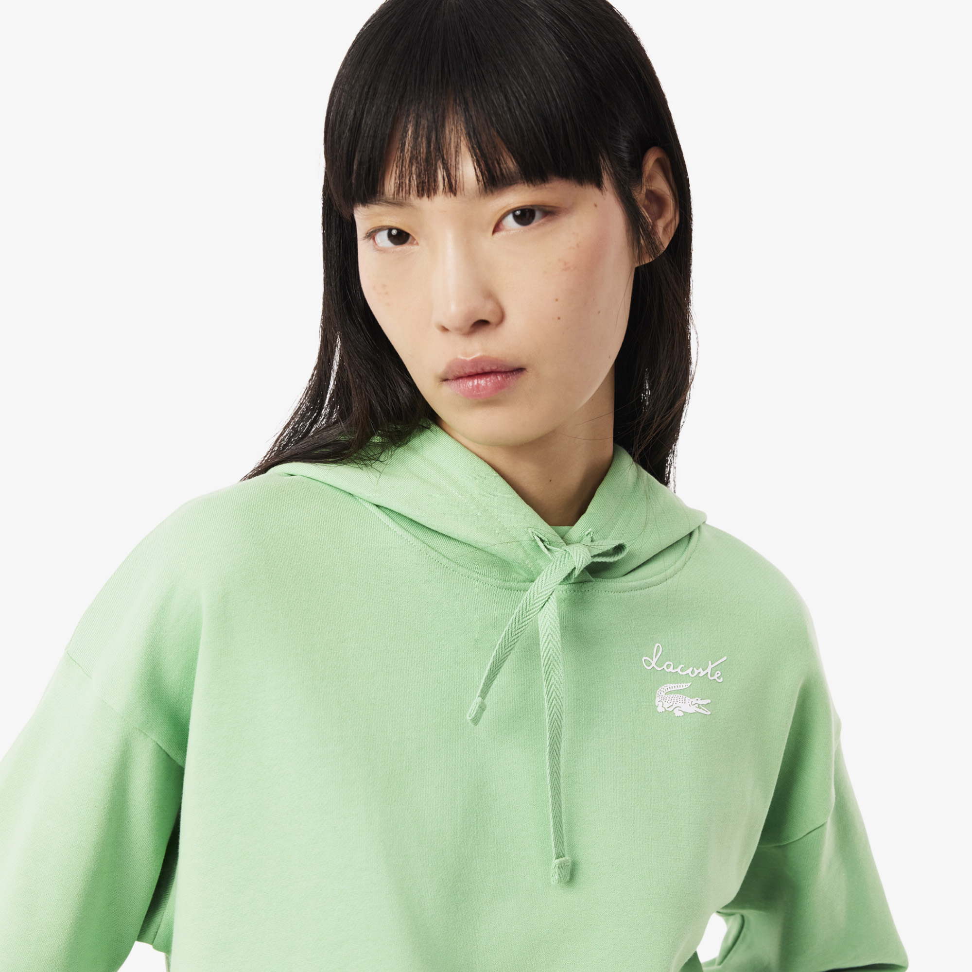 Флисовая толстовка с логотипом \ Хлопковый флис без кисточек \ Oversize-крой, заниженные плечи \ Капюшон с завязками в тон \ Фирменный принт крокодил спереди \ Вышитый крокодил на манжете \ Хлопковый флис с матовой отделкой\свободный крой\спущенная линия