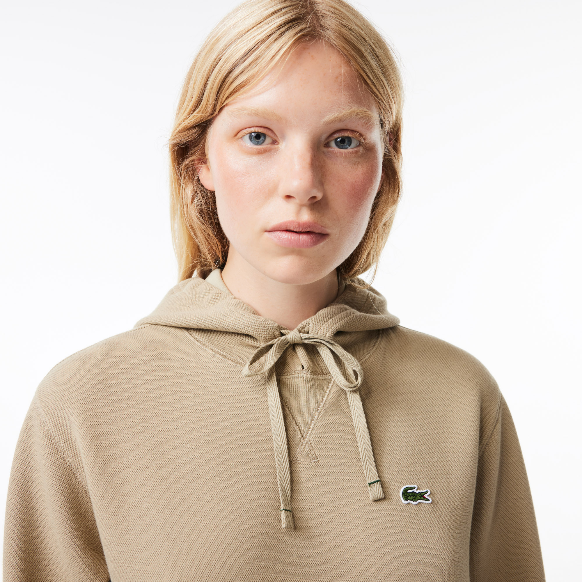 Женская толстовка для бега трусцой свободного кроя из хлопчатобумажной смеси \ Двухслойная хлопчатобумажная смесь пике \ Капюшон с завязками \ Свободный крой \ Карман-кенгуру и отделка в рубчик тон в тон на браслетах и по низу одежды \ Вышитый логотип кро