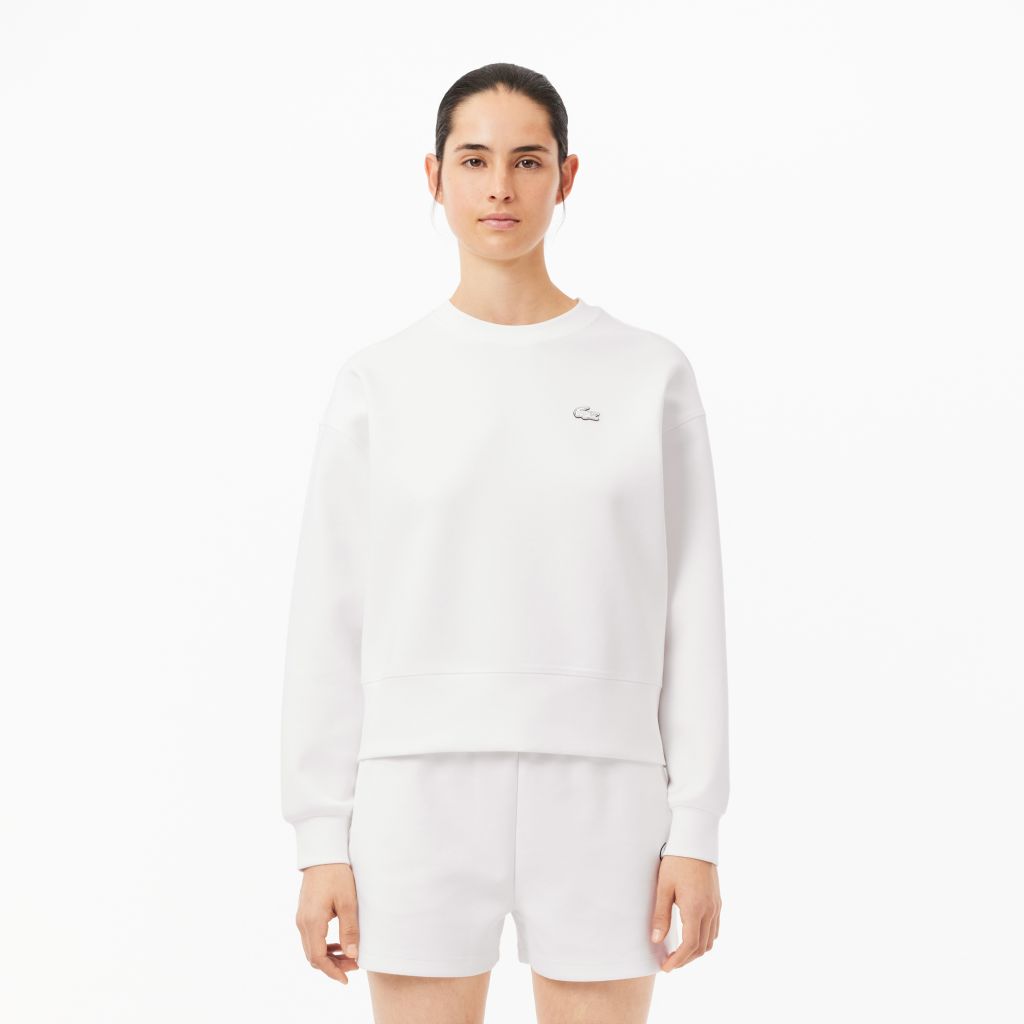 Толстовка из хлопка Oversize \ Двусторонняя эластичная ткань из хлопковой смеси \ Принт Lacoste на спине \ Резинка в рубчик на шее, манжетах и талии \ Логотип из силикона на груди \ Это изделие имеет объемную посадку. Вы предпочитаете обычную посадку? Выб